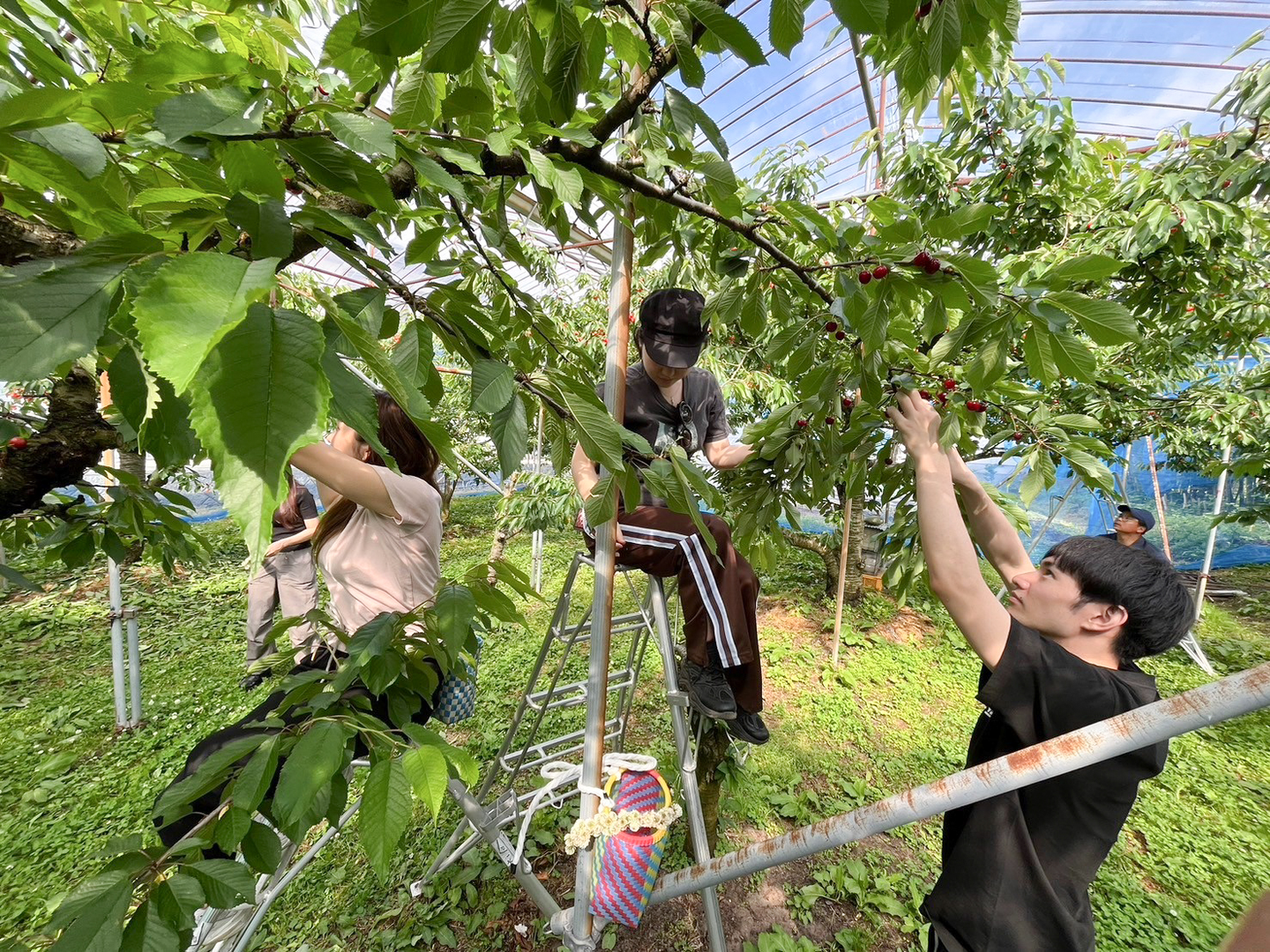 今回はその収穫の様子と、社内でのさくらんぼの試食の様子をシェアしたいと思います。