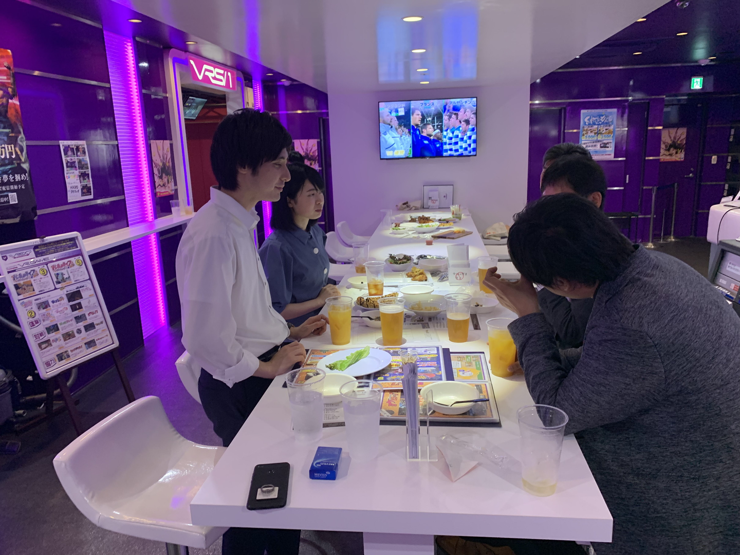 前回の視察で激しいVR酔いがあった代表の湯田は、お酒が入ったことで逆にVR酔いを克服した様子。