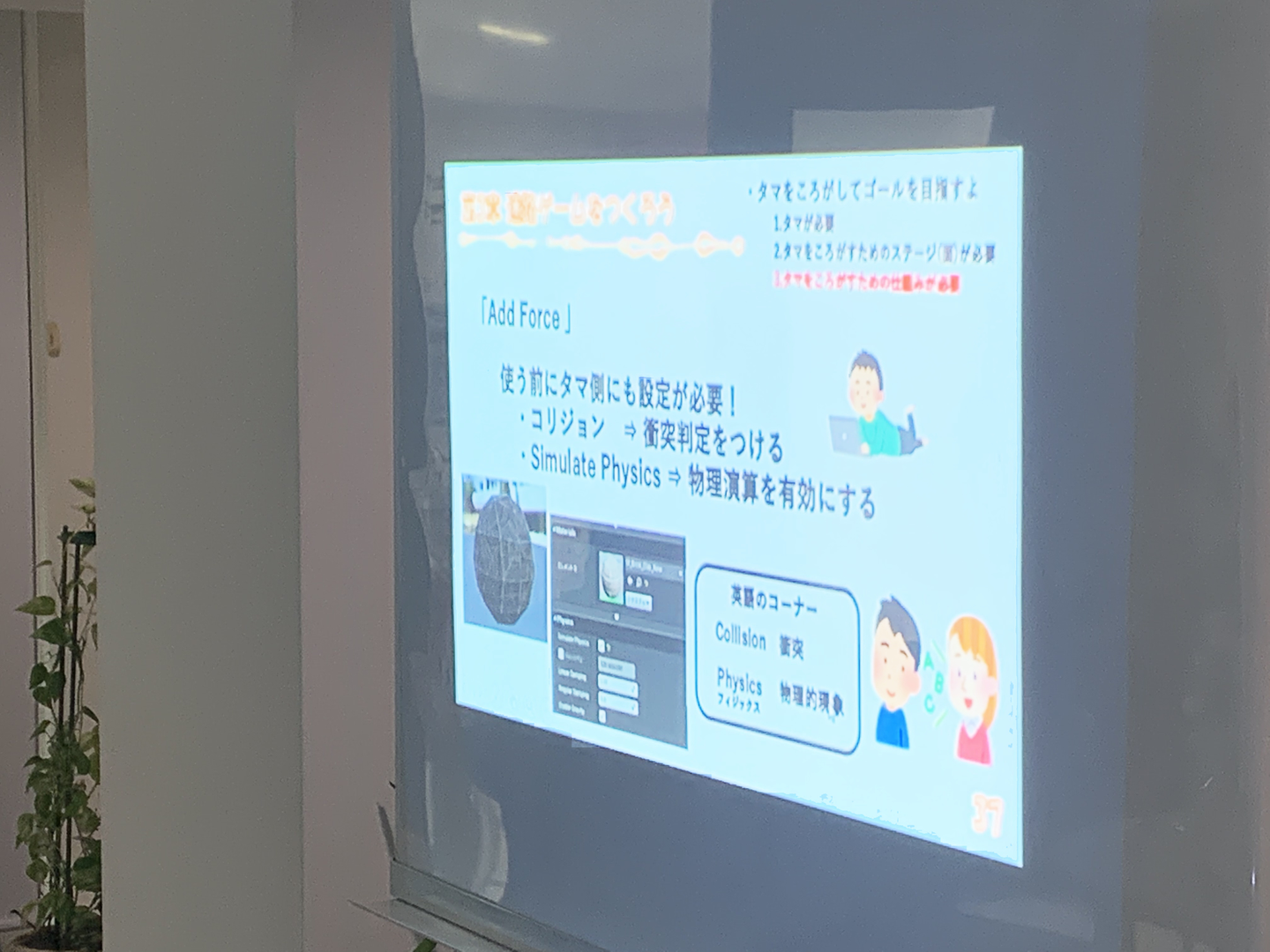 途中、「1クリックで360度回すという設定にしたらどうなる?」「コースアウトしたらずっと落下していく?」「勢いをつけて、壁にぶつけた時ジャンプさせることはできる?」など、質問も多く飛び出しました。