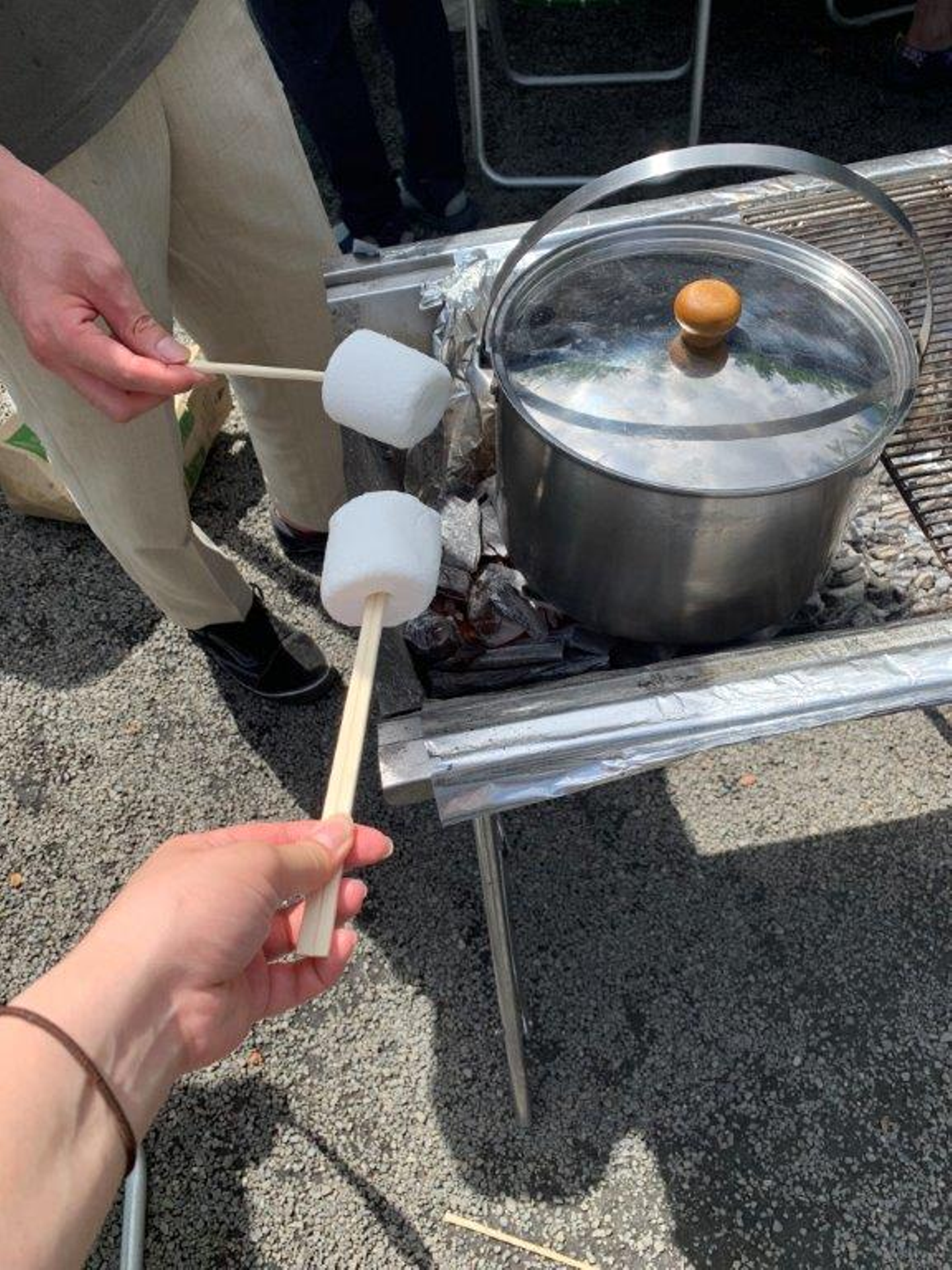 こちらでは、甘いモノ好きが集って焼きマシュマロ。とろとろの甘甘でした…!