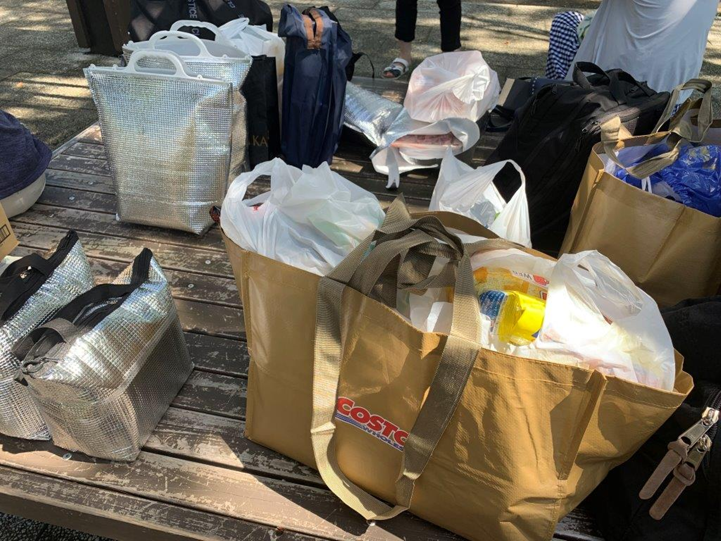 今回の幹事、管理部課長の金子さんが、インフラエンジニアの島﨑さんと一緒に前日コストコに行って大量のお肉を買い込み持参。現地では冷えた飲み物やお菓子等を買い込み、大荷物で向かいます。