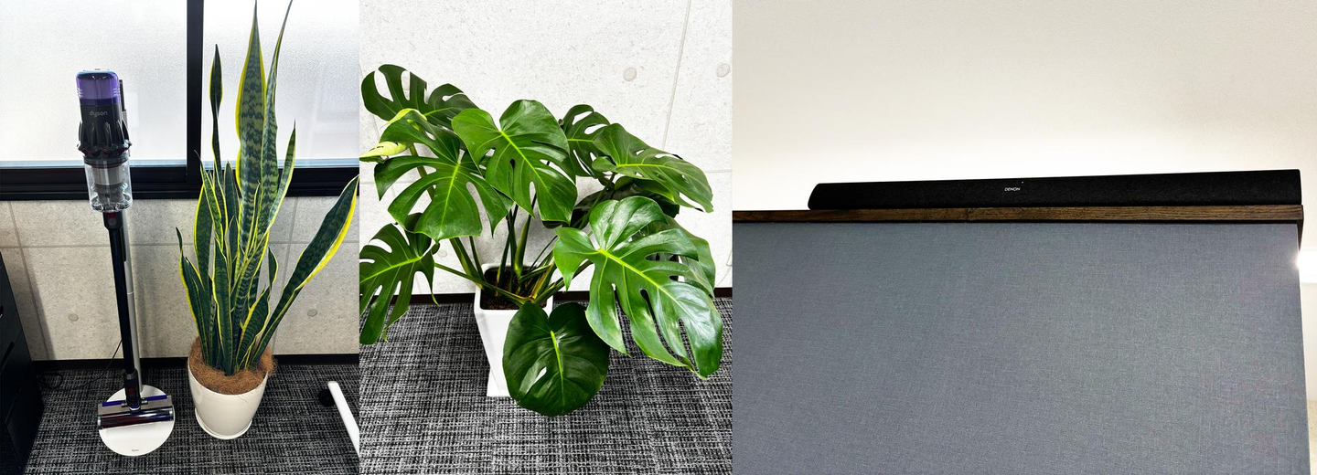 掃除繋がりでは見栄えも良いダイソンの掃除機を購入して、オフィスのインテリアの一部に。スリムな体ながら、軽く良い仕事をしてくれています。