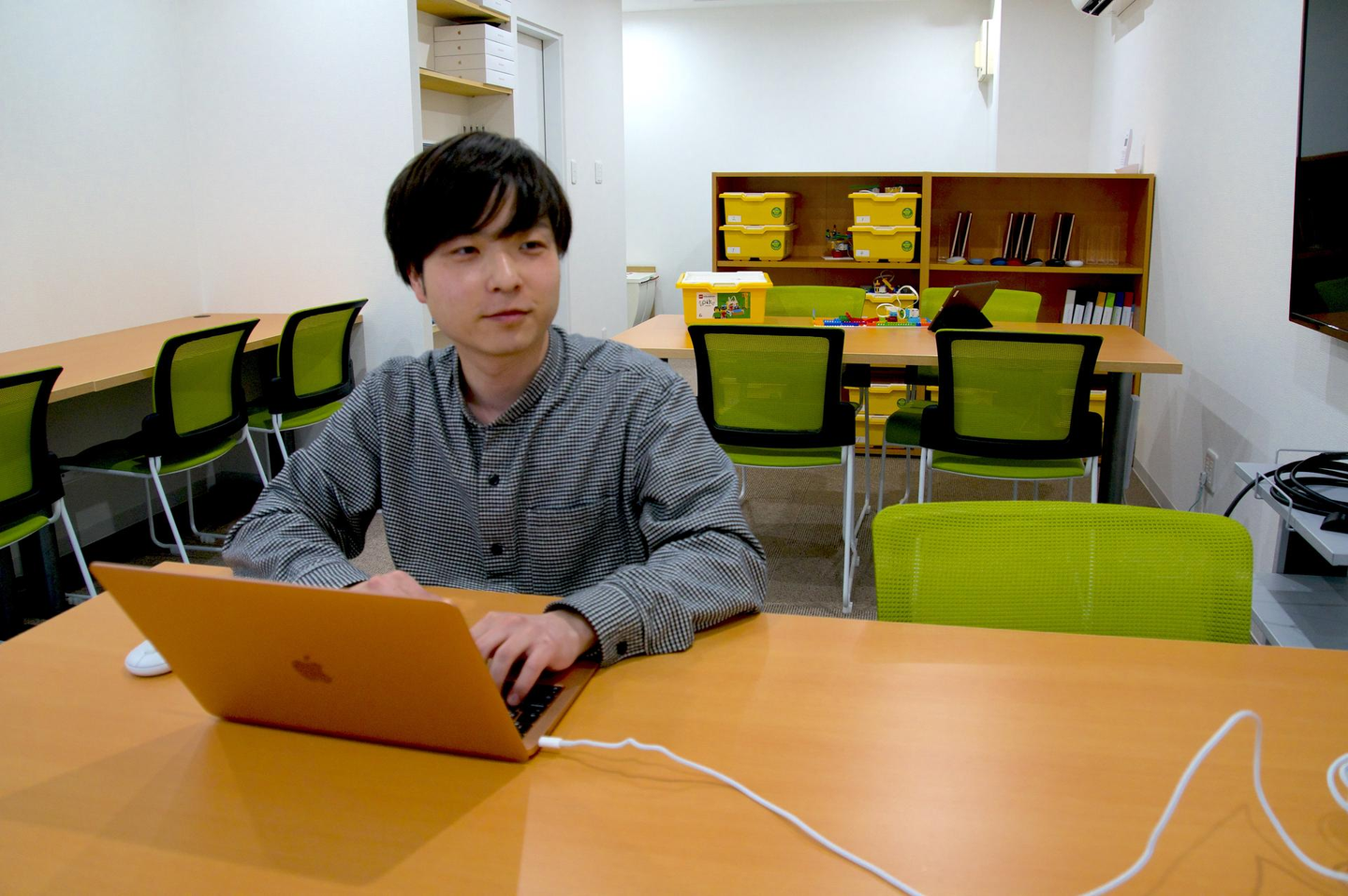 付きっきりで教えるということはあまりなく、悩んでいる場合に適宜アドバイスし、自分で考えてプログラムを作れるようにサポートします。