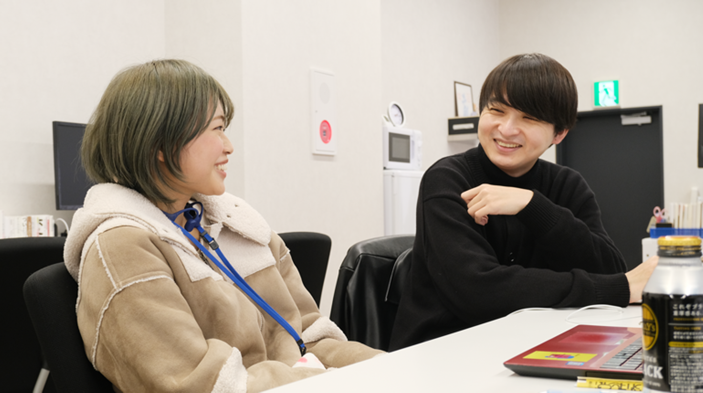 協力してくれるインターン生も積極的に案を出したりモデルになってくれるので、毎回和やかな雰囲気で撮影を行なっていますよ。