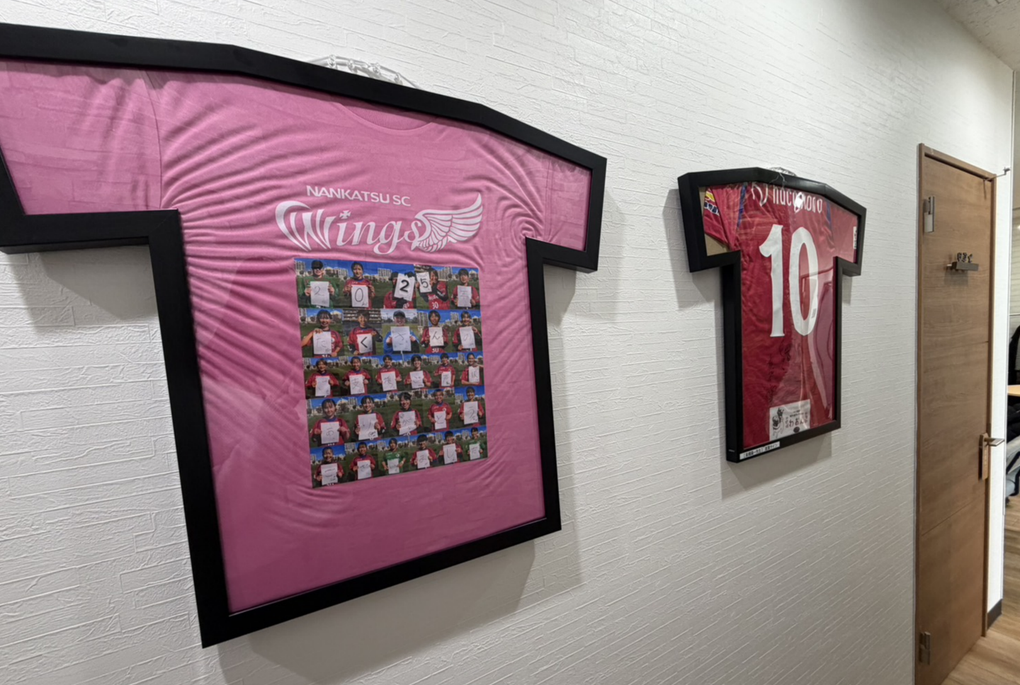 南葛SCのサッカー選手が働いている当社!キャプテン翼の作者のサイン入りユニフォームも飾ってあります!