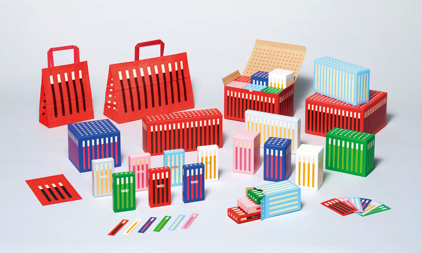 国民的お菓子のポッキーを、スーパーなどの通常接点以外での購入促進やギフトシーンに切り込むために、パッケージや梱包材料を工夫しました。