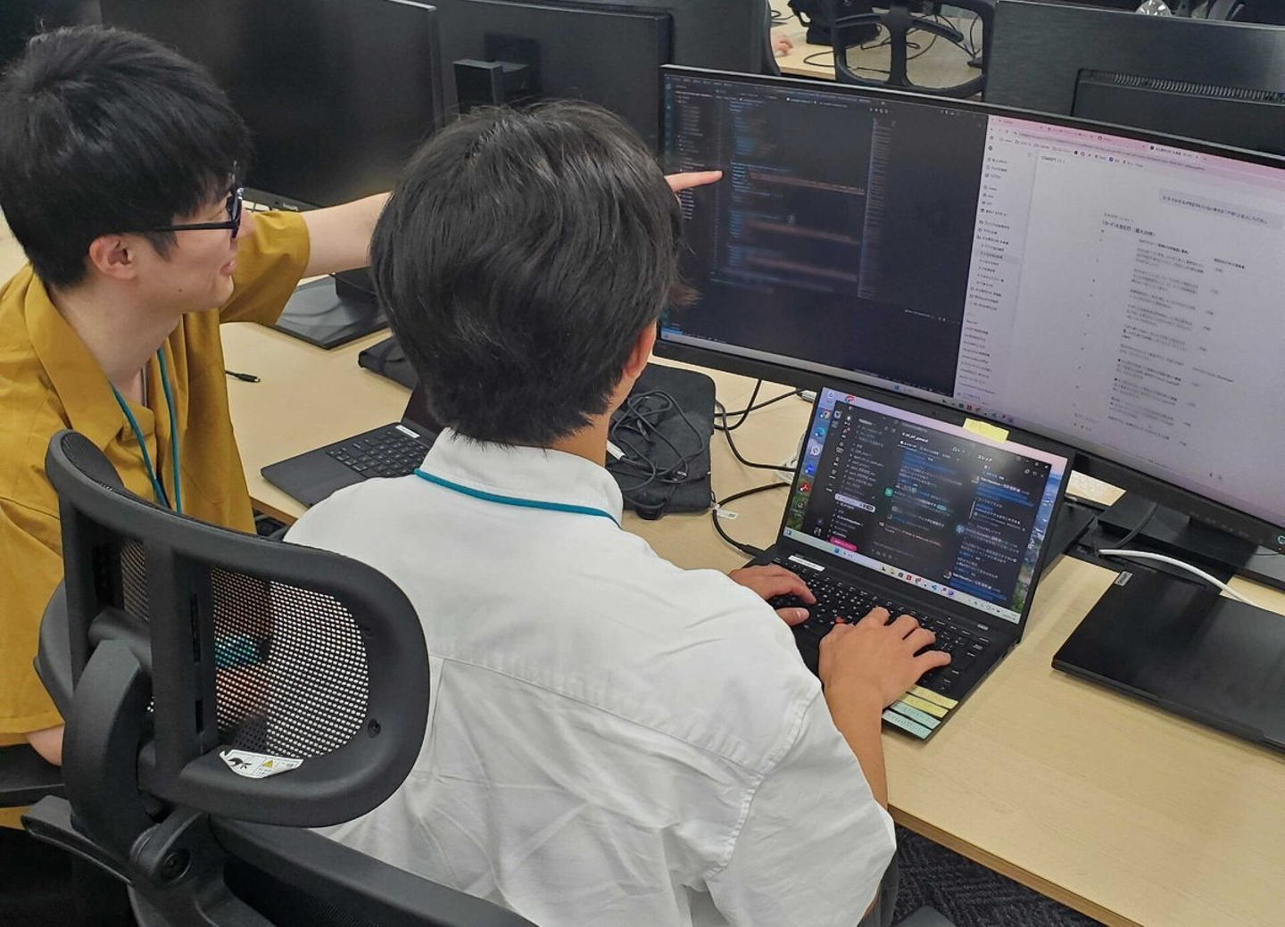 そして、AIでも解決できないような複雑な問題に直面した時は、チームの先輩が助けてくれます。コードレビューで的確なアドバイスをもらえたり、朝会後に疑問を解消する時間を設けてくれたり。先輩がエラーを修正する作業を隣で見て、「こういうエラーが出たら、まずここを見るんだな」と問題解決の思考プロセスを肌で学んだりしています。