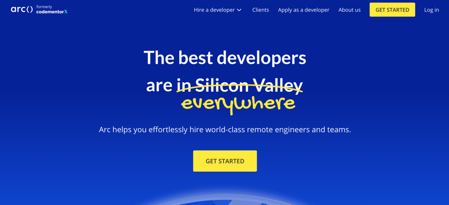 Arcはフルタイムのリモート開発者およびエンジニアリングチームを雇うためのツールである。世界中の才能を持った人材を採用して最高のエンジニアリングチームを構築することができる。