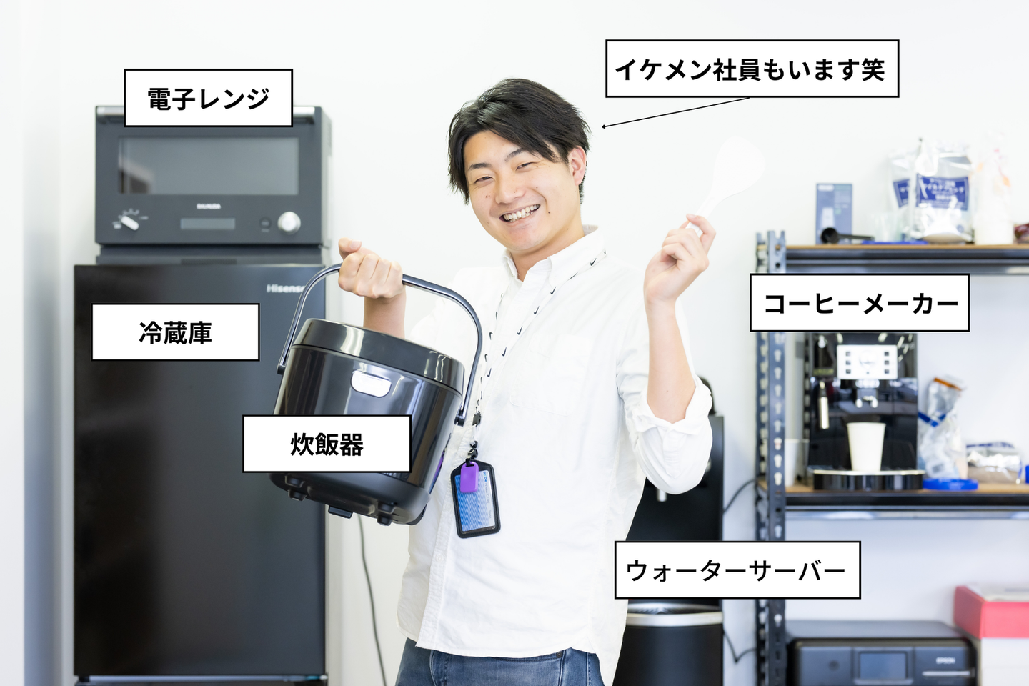 オフィスでは、ほかほかご飯が食べれたり、おいしいコーヒー飲めたり、、、