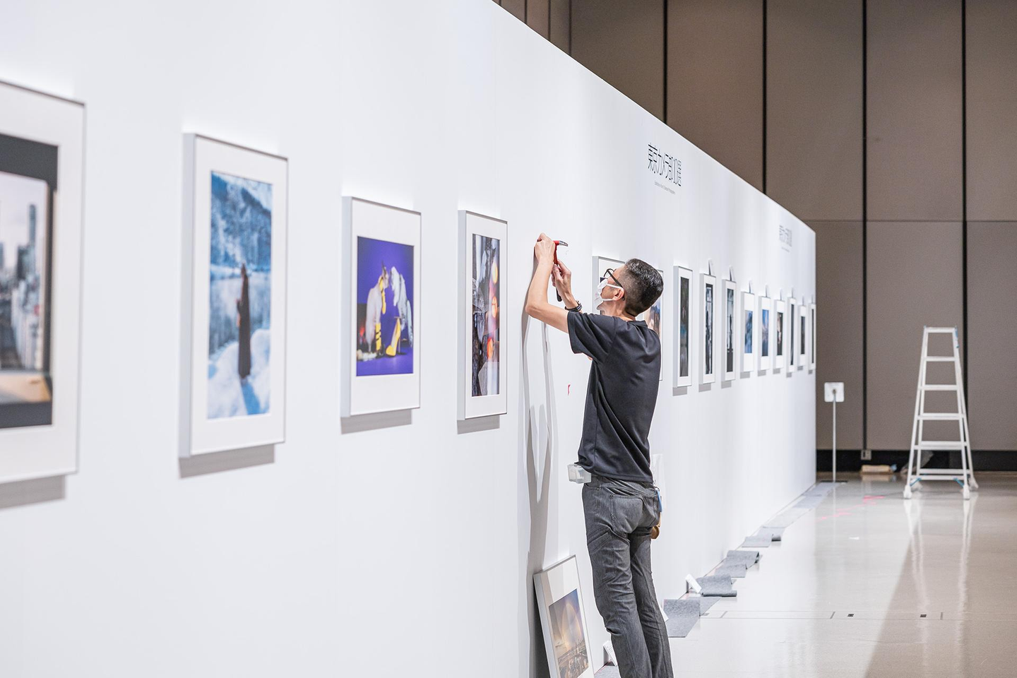 壁に順番通りに作品を並べていく様子