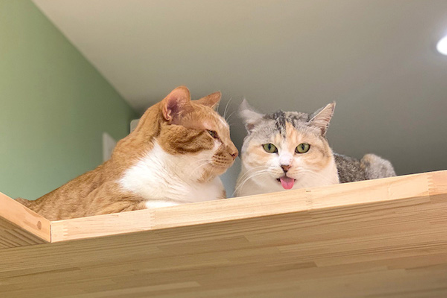 (写真)ねこ社員のちゃま(左)とうーちゃん(右)