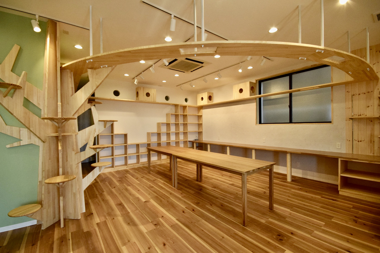 このこだわりのオフィスには、設計士さんや工事をして下さる方々と協議を重ね、ねこのプロフェッショナルの方にもアドバイスを頂き出来上がりました!