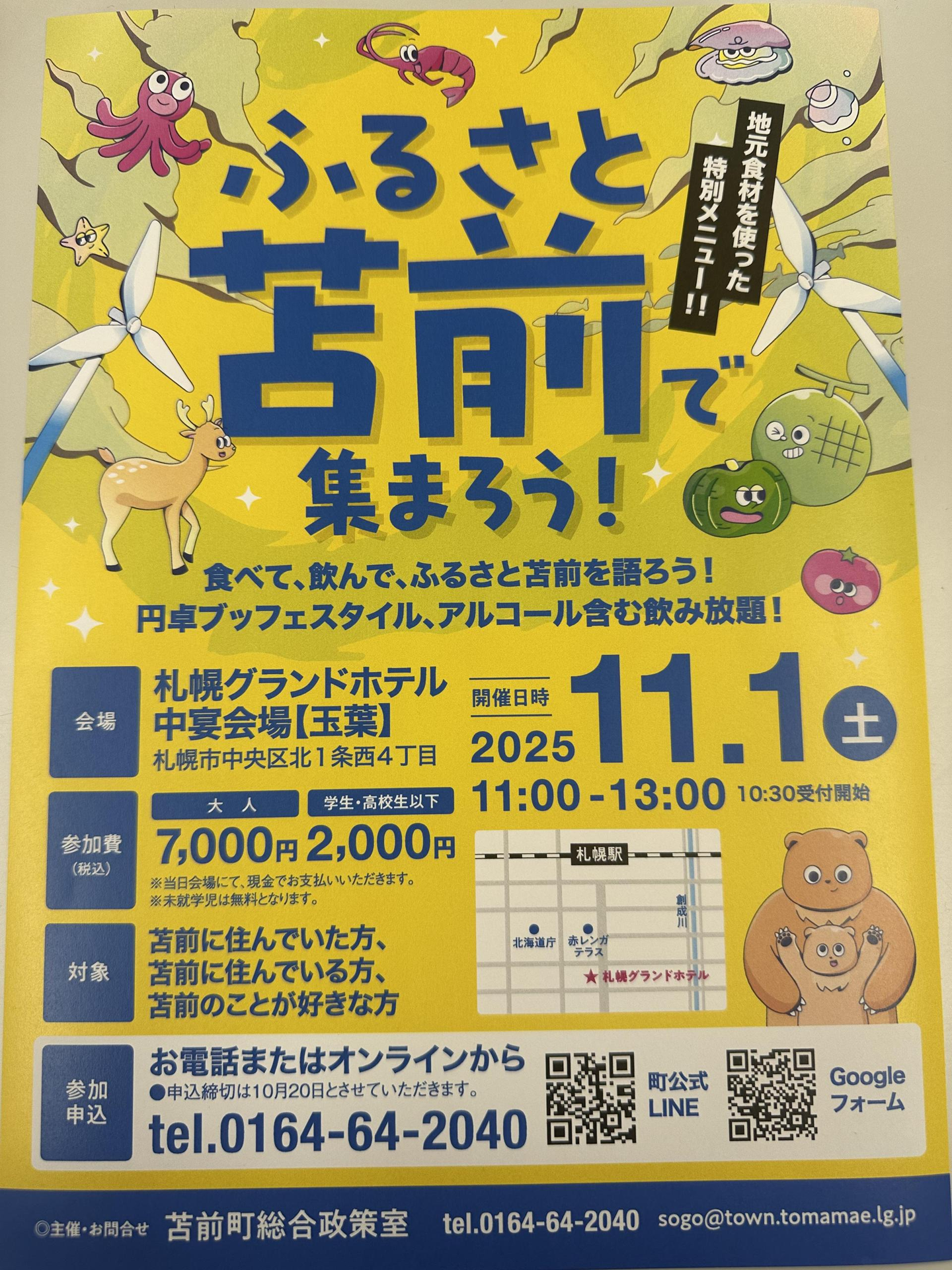 「ふるさと苫前が好きだ!」という方であれば、どなたでも(どちらにお住まいでも)ご参加いただけますので、ぜひ、ご家族様だけでなく、懐かしい同郷、同窓の皆様お誘い合わせの上、ご参加ください。