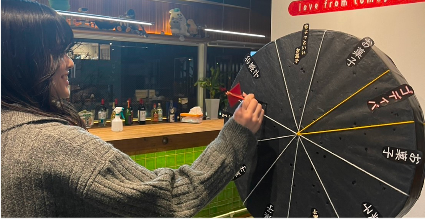 お題をクリアするとダーツを投げ、当たった箇所のお菓子がもらえます。