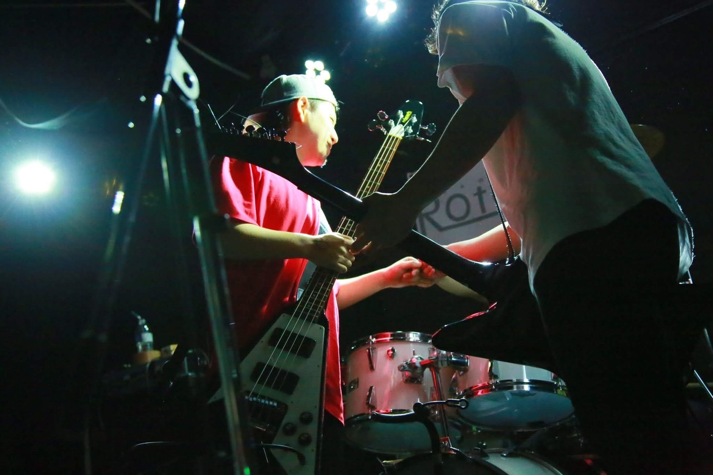 それから時が経って中2の時にいとこからギターをもらったんだけど、その瞬間からバンドを組みたくて仕方がなくて、中3でついに初めてバンドを組んだ。そして学園祭でカバー曲を披露したんだけど、体育館のステージ前に生徒がいっぱい集まってきて、俺たちの演奏で盛り上がってくれたんだよ。その光景と感覚がめちゃくちゃ気持ちよかった。