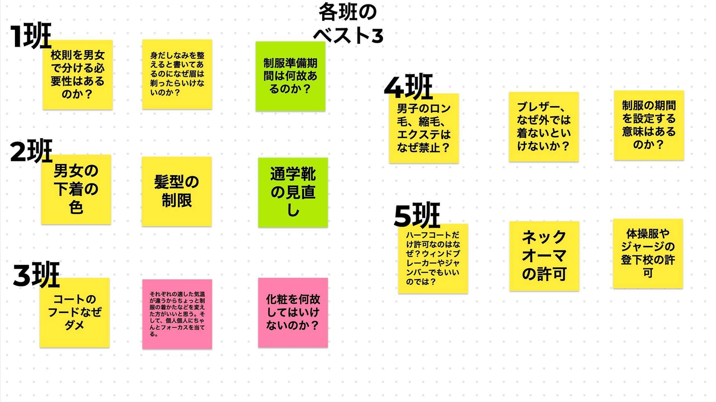 ルールを変えるには生徒総会での多数決が必要になります。プロジェクトでの意見集約を元に、7月の生徒総会に向けて検討するべきルールを3つに絞りました。