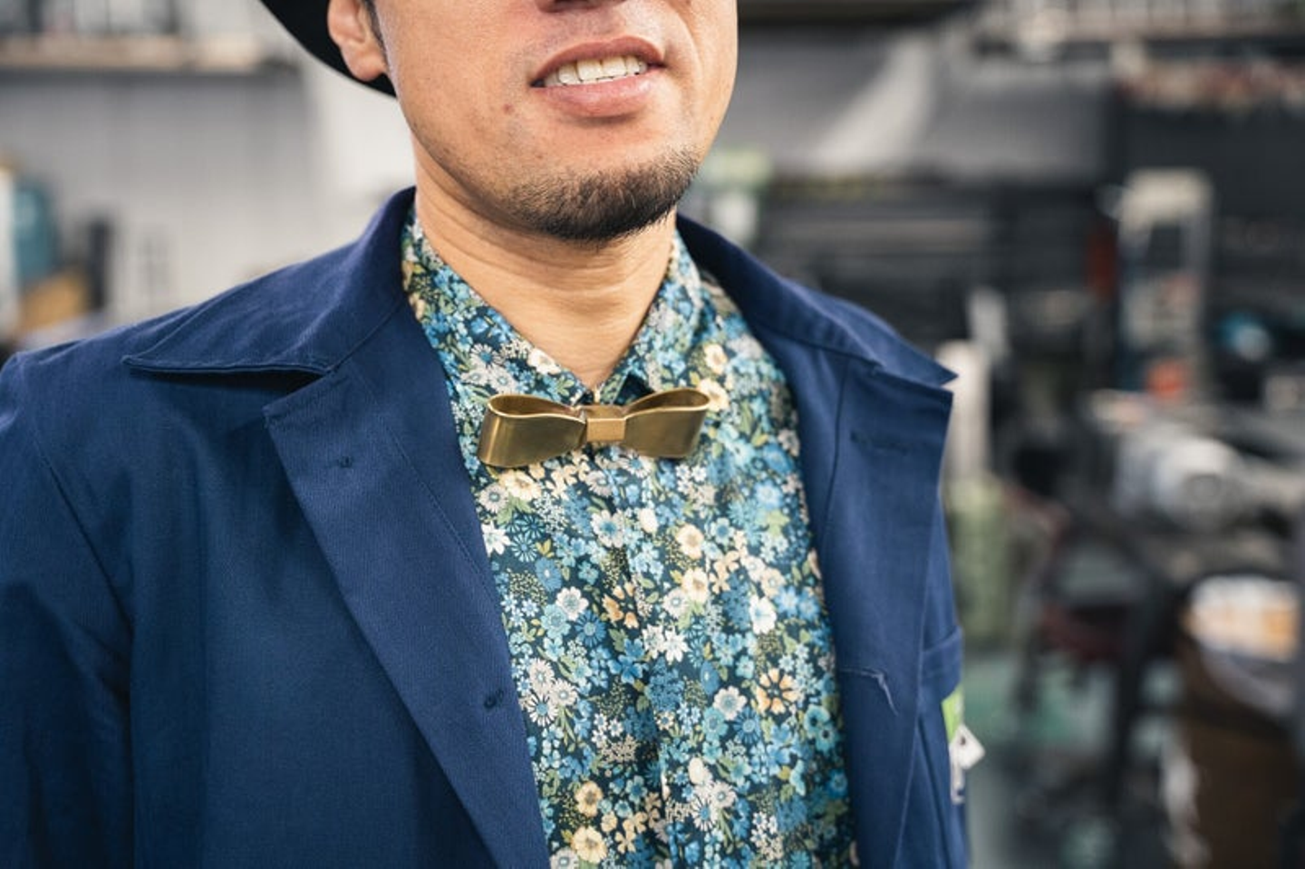 ↑蝶ネクタイはこの日のために真鍮で作ったそう
