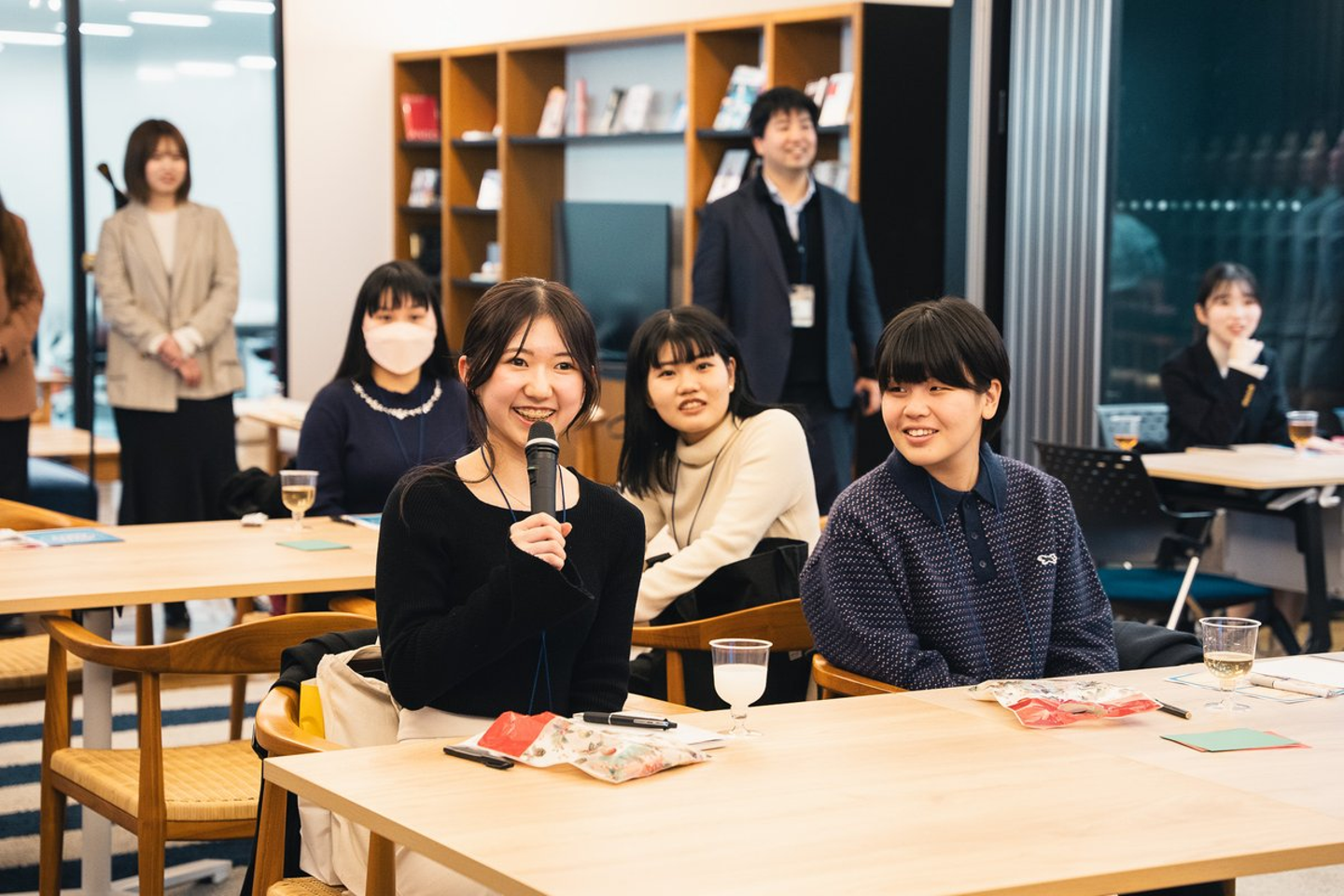 社会人生活ってどんなものなのか、学生の皆さんにとっては想像もつかないことがたくさんあると思います。私たちも、今学生さんがどんな不安や疑問を抱えているのか、なかなか知る機会はありません。「語り合おう」を通して、いろんな視点から働くことや将来について、お互いが考えられたのではないかと思います。
