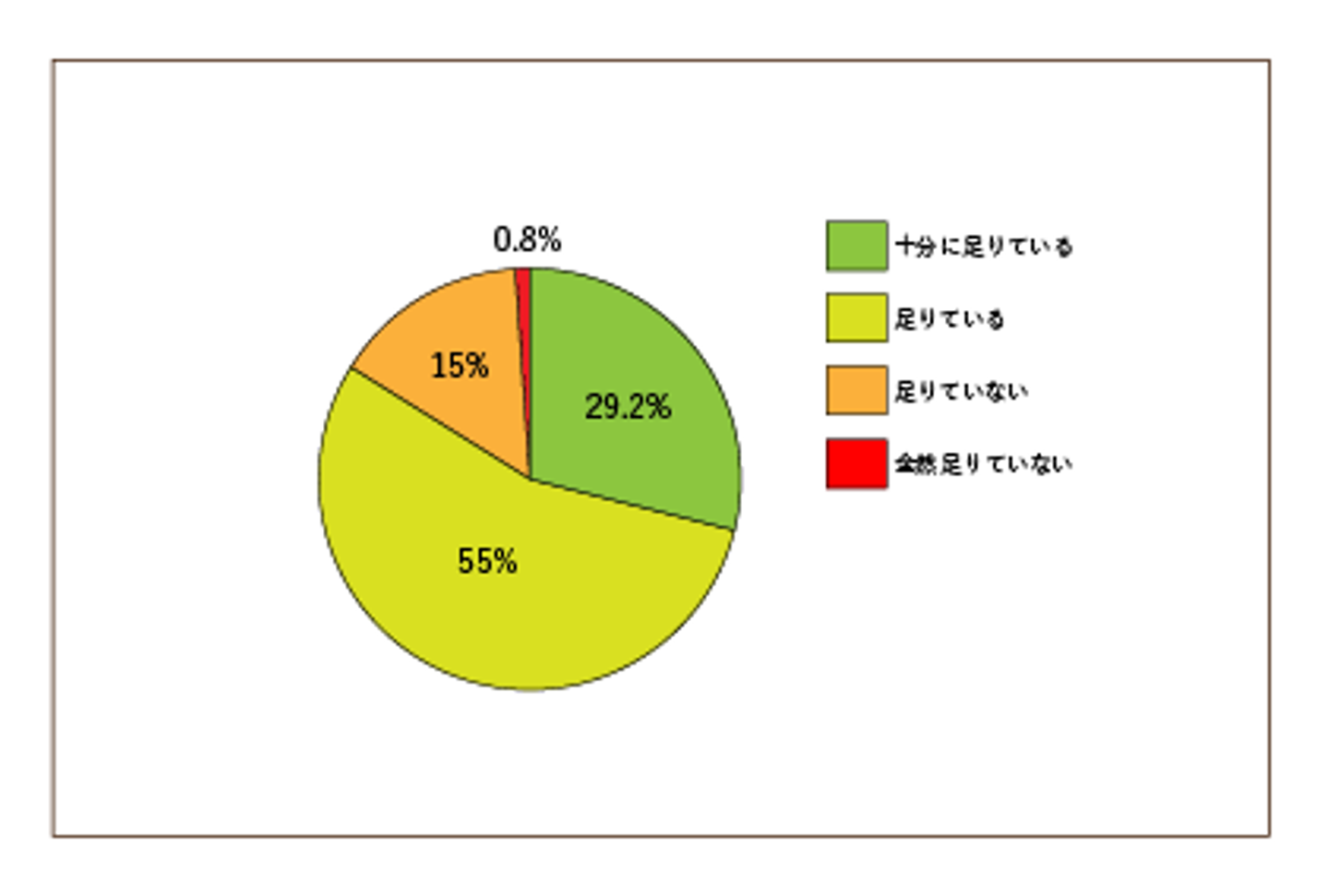 A. 十分に足りている…29.2%、 足りている…55%、足りていない…15%、 全然足りていない…0.8%