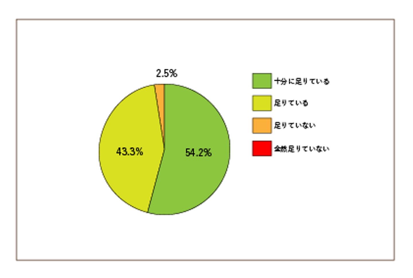 A. 十分に足りている…54.2%、 足りている…43.3%、足りていない…2.5%、 全然足りていない…0%