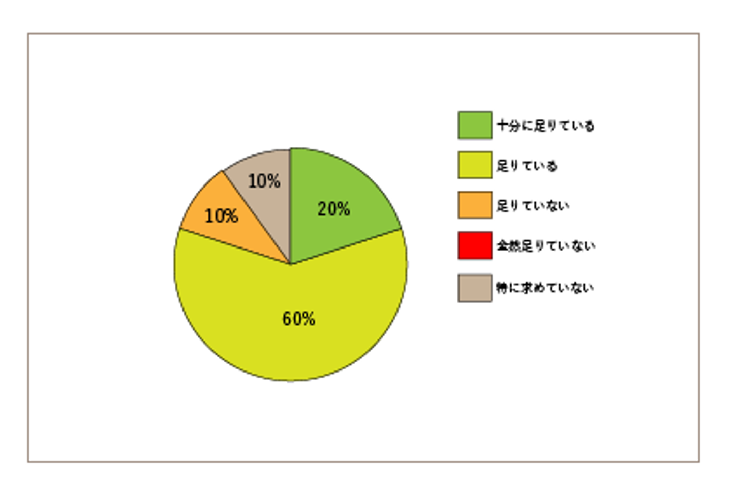 A.十分に足りている…20%、 足りている…60%、特に求めていない…10%、足りていない…10%、 全然足りていない…0%