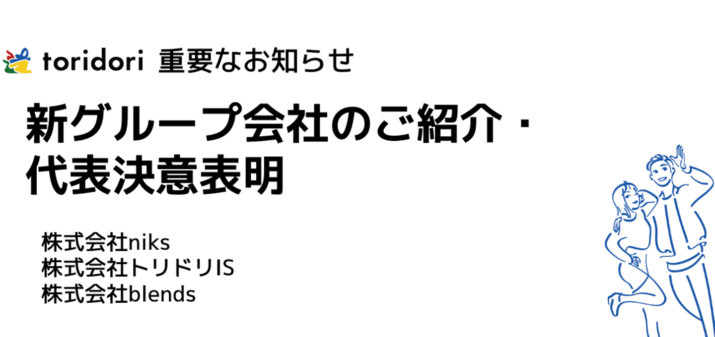 toridoriは今年は今まで以上のスピードで規模拡大・成長を続けています。今期はなんと、新たに3つの会社がtoridoriグループにジョインしました!