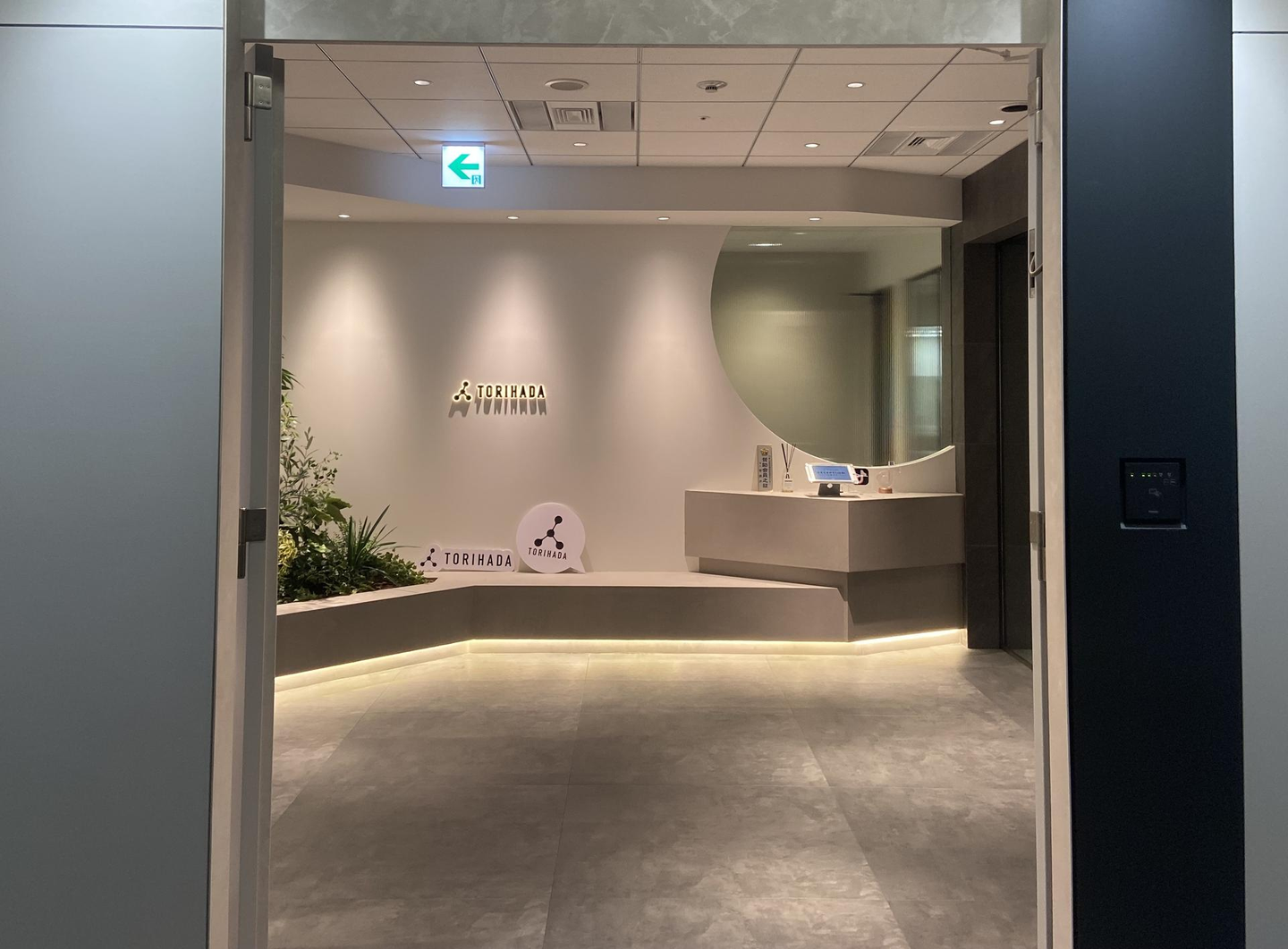エレベーターの位置によっては、ドアを開けた瞬間にTORIHADAのロゴが目に入ってきて気合が入ります。