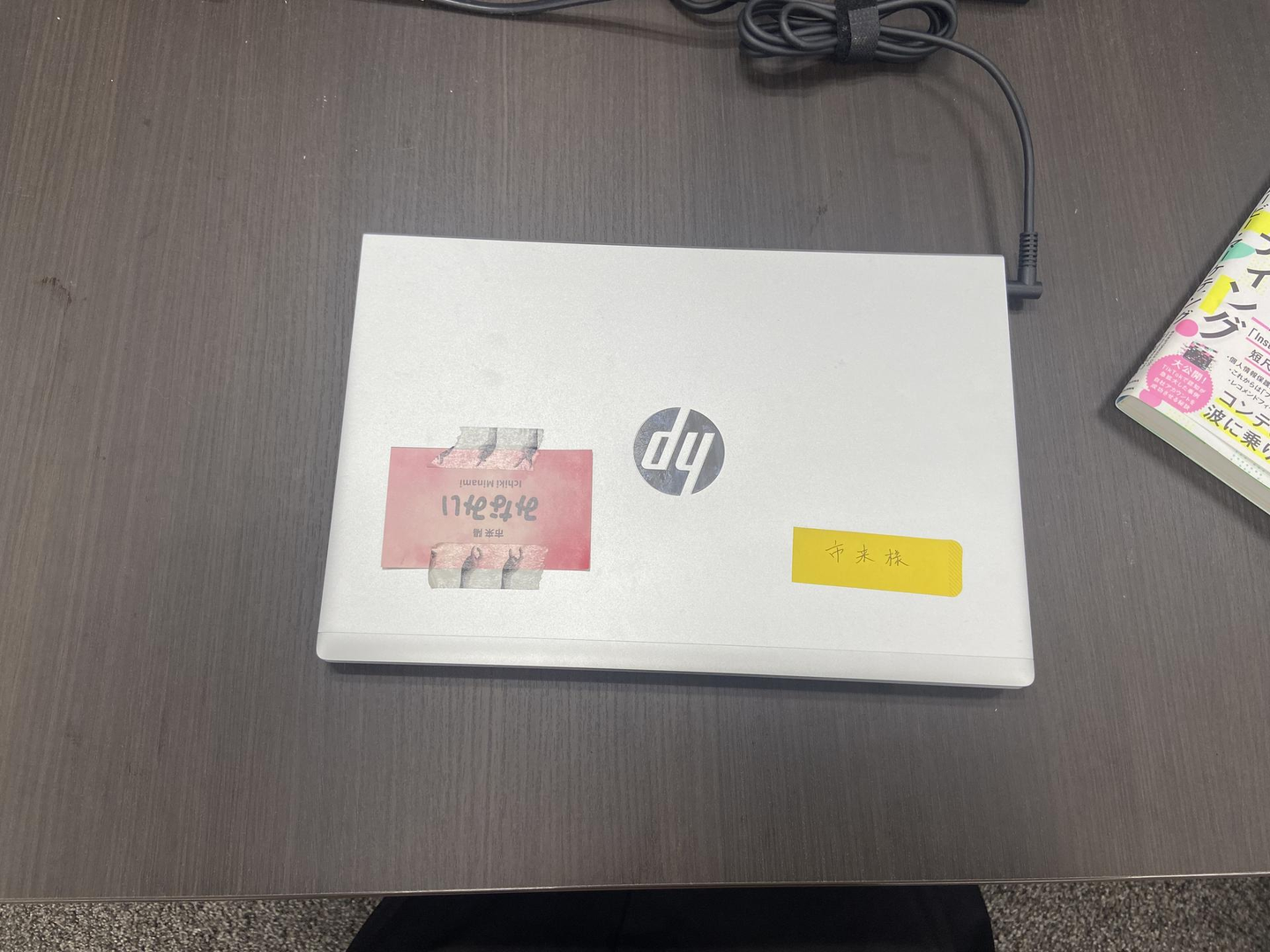 フリースペースを進んで執務室に入り、左手に進むと人事のデスクがあります。社長の本がチラ見え。