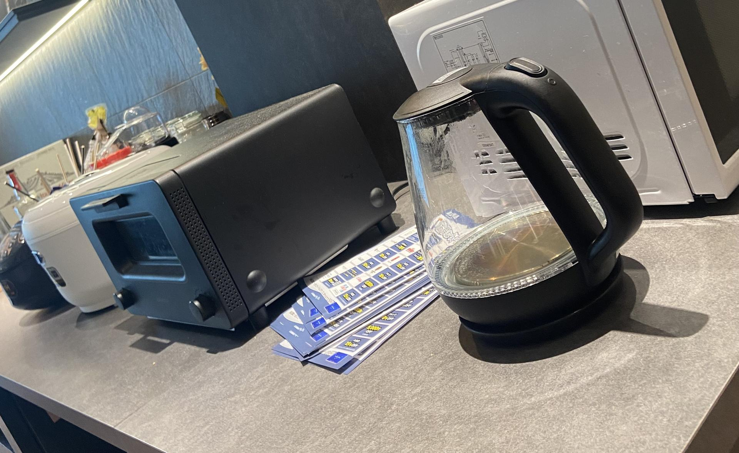 こちらはキッチン。炊飯器、トースター、湯沸かし器などいろいろ揃っています。