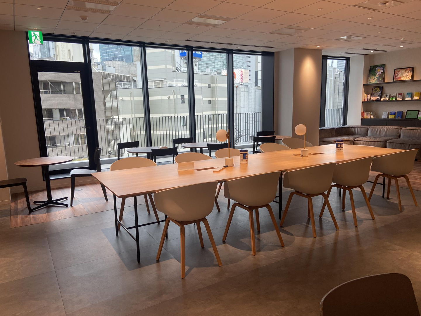 こちらは毎週月曜始業とともに始まる朝会などの社員が集まる機会や、ひとりでもくもく作業をしたいとき、ご飯を食べるときなどほんとうにフリーに使用されています。