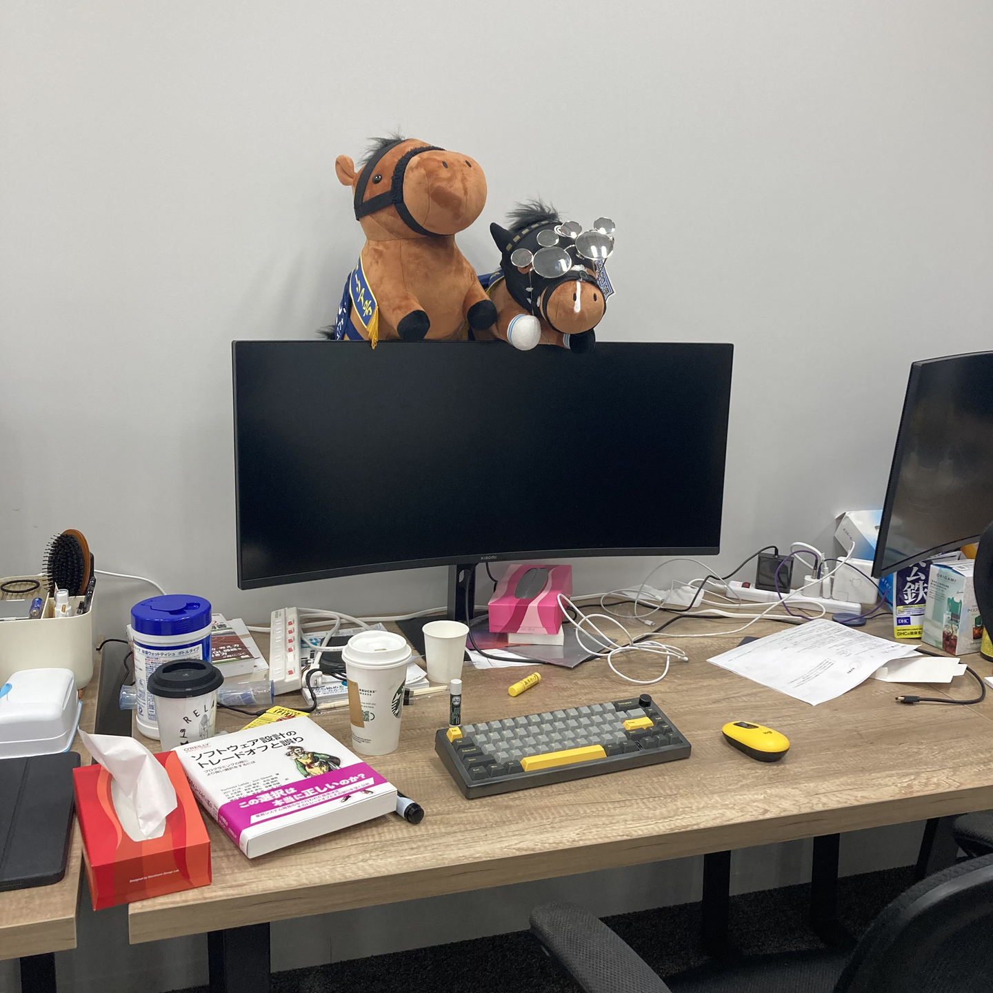 エンジニアさんは全員横長のデスクトップが付与されておりかっこいいです。