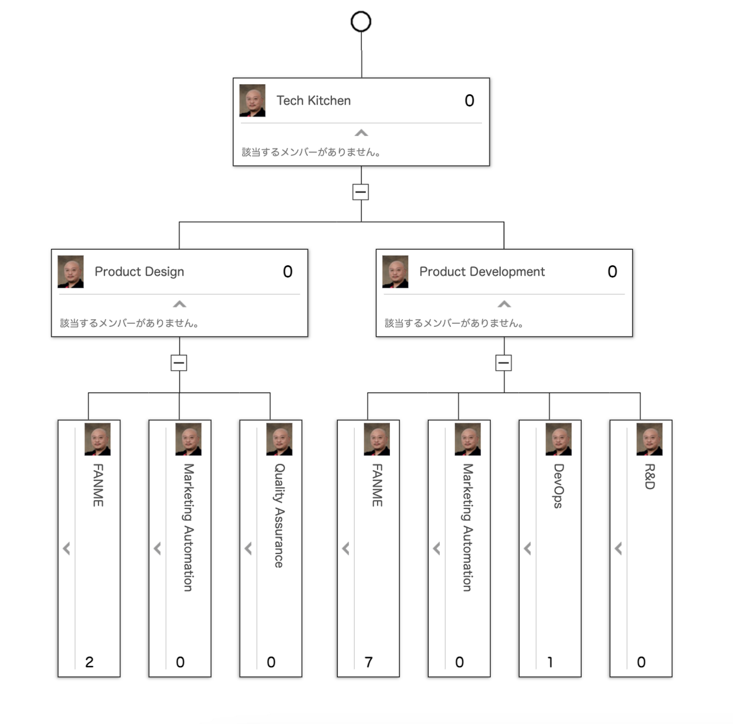 CTOの中住を筆頭に、業務内容や開発項目に応じてチームが分かれております。