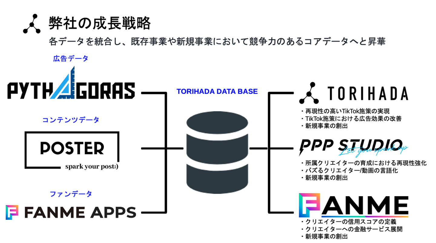 その他にも、代理店事業・MCN事業を行っているTORIHADAの強みである実績・データを集約し