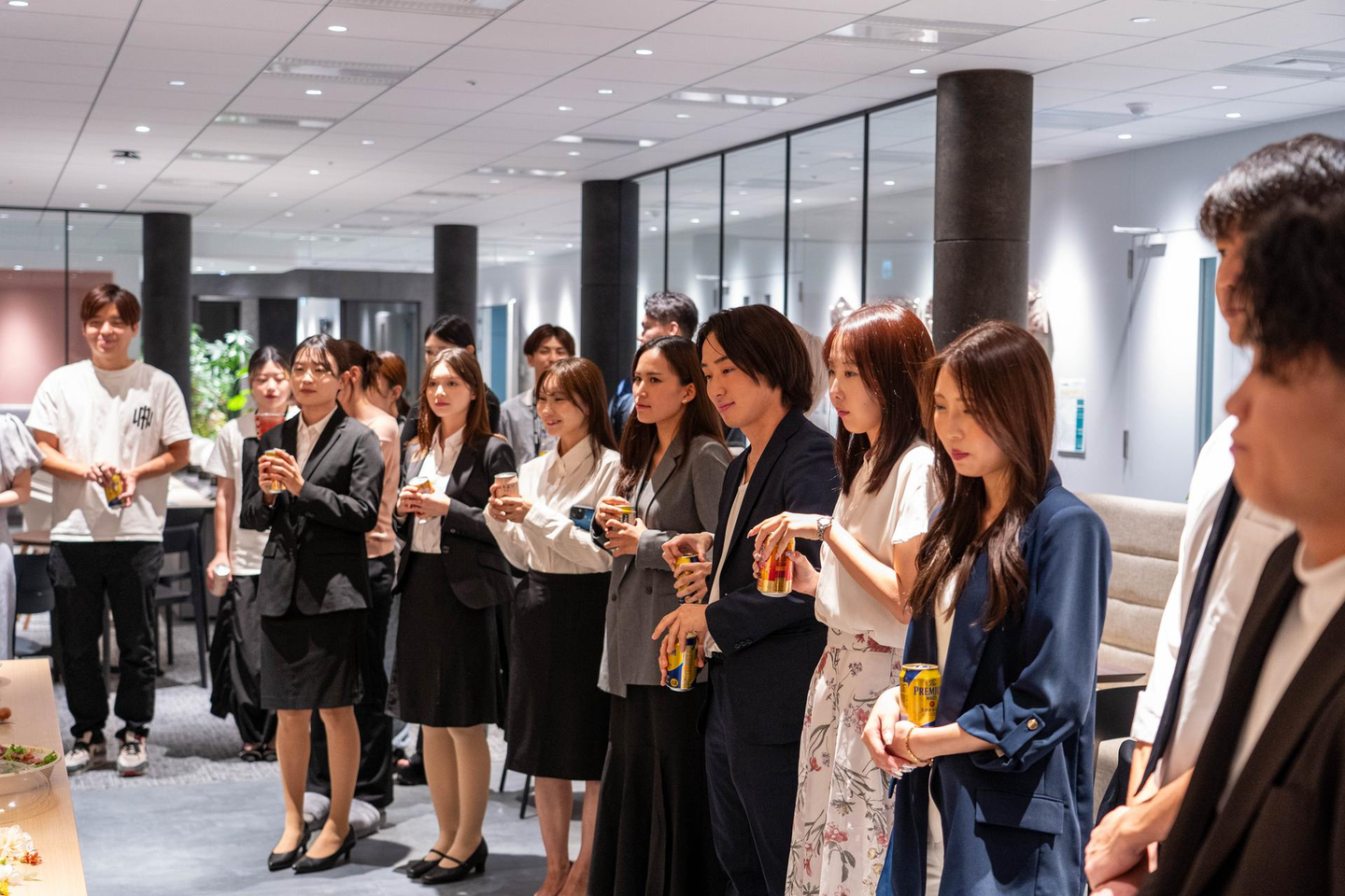 参加社員はCEO若井、COO卯木はもちろん、マネージャー陣や新人賞・ベストルーキー賞・ベストセースル賞等の、社内表彰を受賞された実力社員が勢ぞろいの参加で、内定者の皆さんも最初は少し緊張な表情を浮かべていました。
