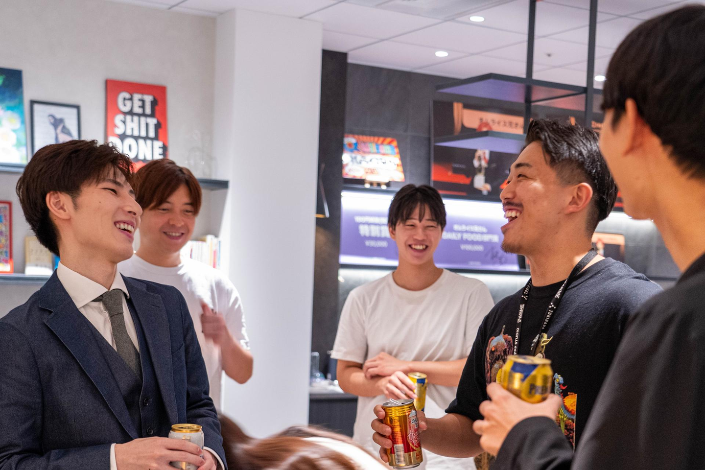 時間が経つにつれて、最初は少し緊張していた内定者たちも、次第にリラックスし、お酒を片手に美味しい料理を楽しみながら、先輩社員と仕事の話や社会人生活のアドバイス、プライベートな話題などで盛り上がりました。会話が弾むうちに、お互いの距離も自然と縮まり、心が踊るような楽しい時間があっという間に流れていきました。