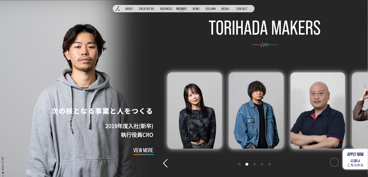 TORIHADAからのメッセージに共感頂けたらここから採用サイトの魅力をお伝えしていきます。