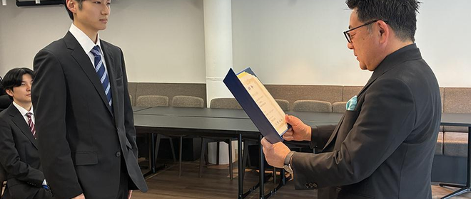 先日、2026年4月入社の方々への配属辞令授与式を行いました。代表の大賀から入社のお祝いと入社してからの心構えなどをお話しし、辞令の授与を執り行いました。授与式の後は昼食会へ。みなさんの少し不安そうながらも希望に満ちた表情が印象的でした。入社されてからの活躍に期待です!