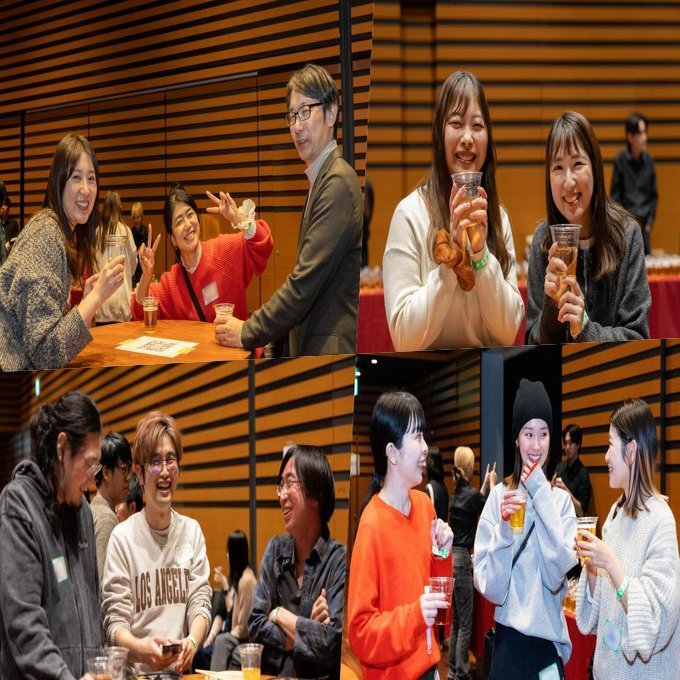 豪華なケータリングを楽しみながらの雑談タイム。普段なかなかリアルで会えないメンバーも多く、「久しぶり!」という声や、「今年もお疲れさま!」と笑顔で語り合う姿があちこちで見られました。各所で笑い声が響き、フェス会場さながらの熱気と温かい交流が広がります。