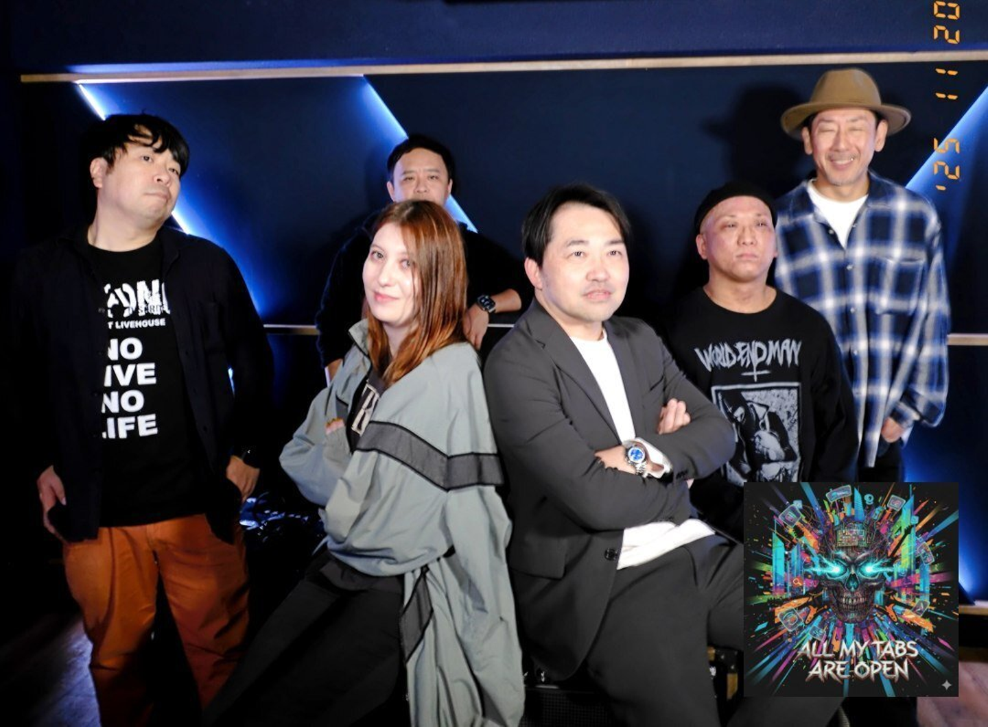 イベントの幕開けを飾ったのは、DIの組織長で結成されたロックバンド「 ALL MY TABS ARE OPEN」! バンド名の由来は、副本部長のブラウザは大量のタブが常に開きっぱなし…から名付けたとか。本当は生演奏にしたかったのですが、諸々の大人の事情にて、事前にスタジオ収録された音源&映像が流れました。