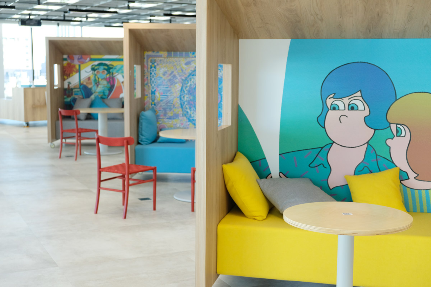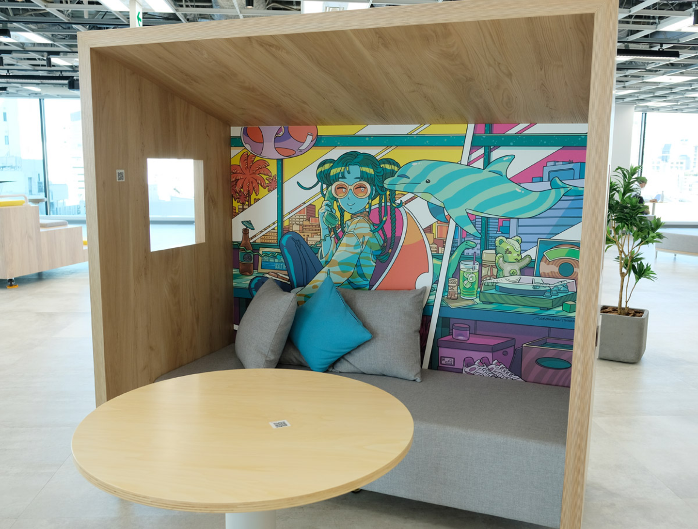 中には気鋭のイラストレーターの方にグラフィックを書きおろしていただき、今や人気の映えスポット!