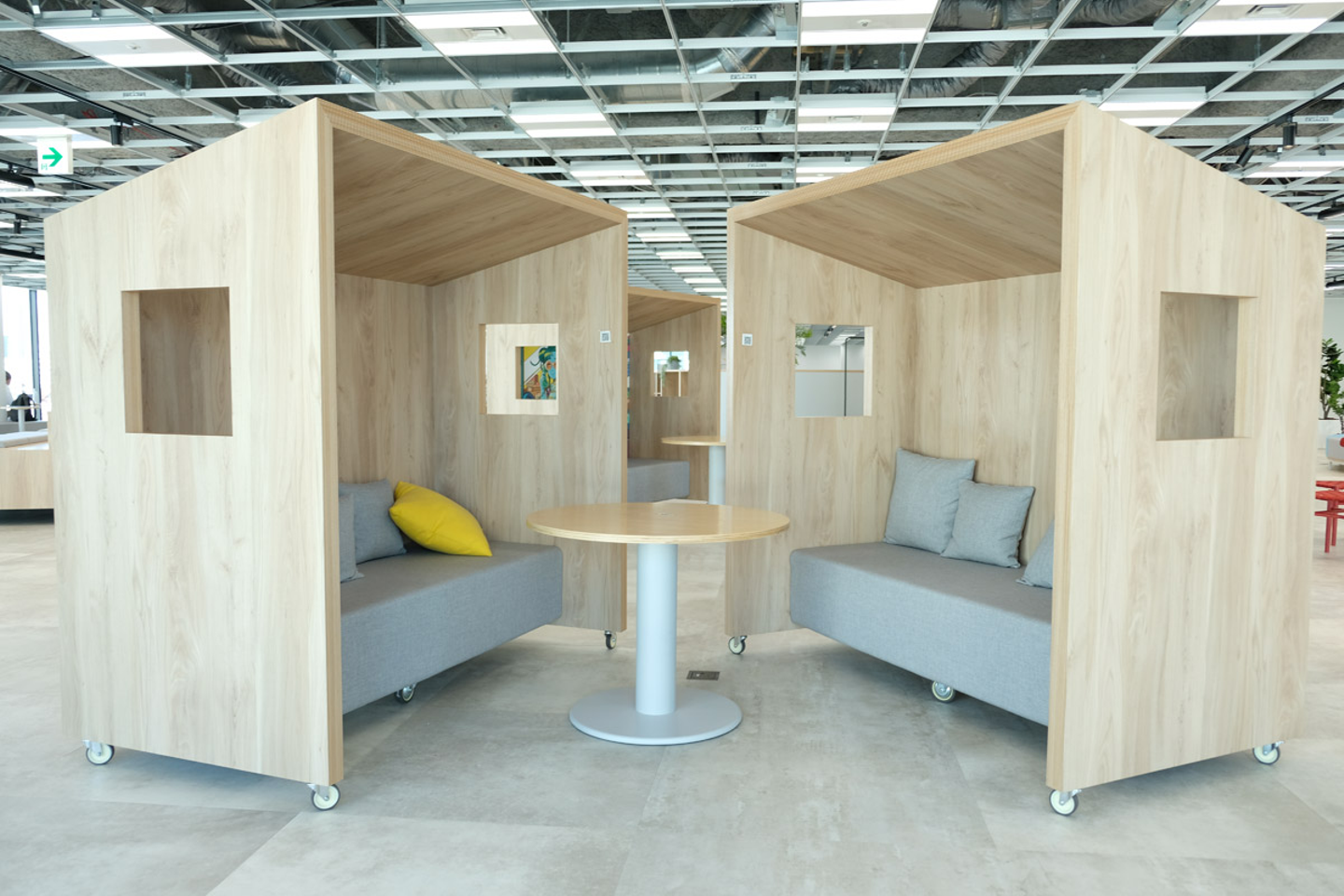ただ、会議がオンライン化したことにより、例えばプレゼンテーションの時は周りの声が入らない空間で対応する必要があったり、採用面接や面談のときには個人情報を話すこともあるため必要だったり(現在はWeb面接ですが)、なんだかんだで、あったほうがオフィスの利便性は高いと判断し、設けることになりました。