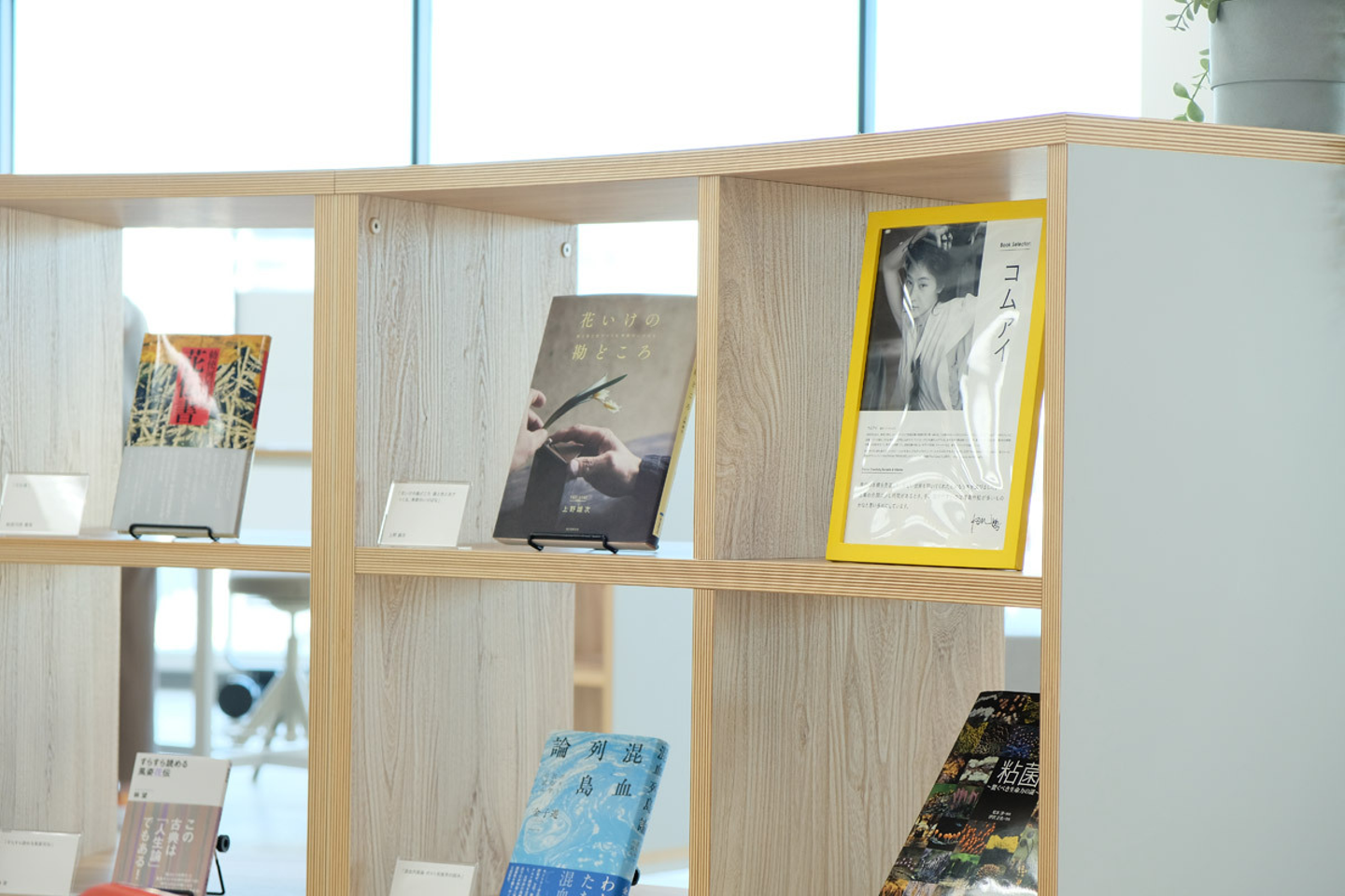 特徴的なエリアはこんなところですが、フロアを歩いていると、オブジェのように点在している本が目に入ります。