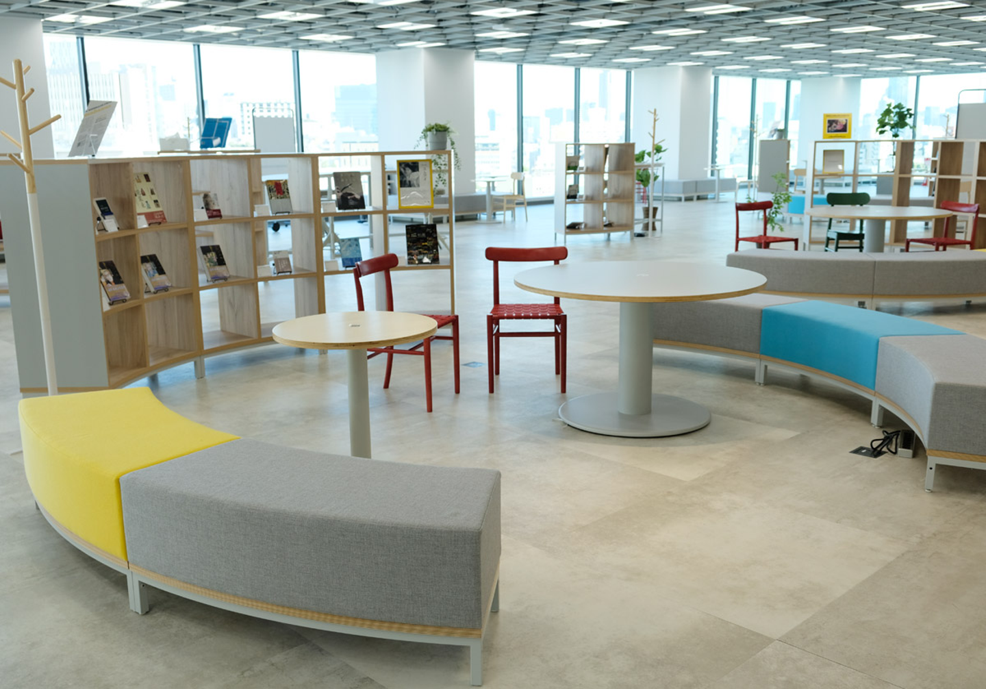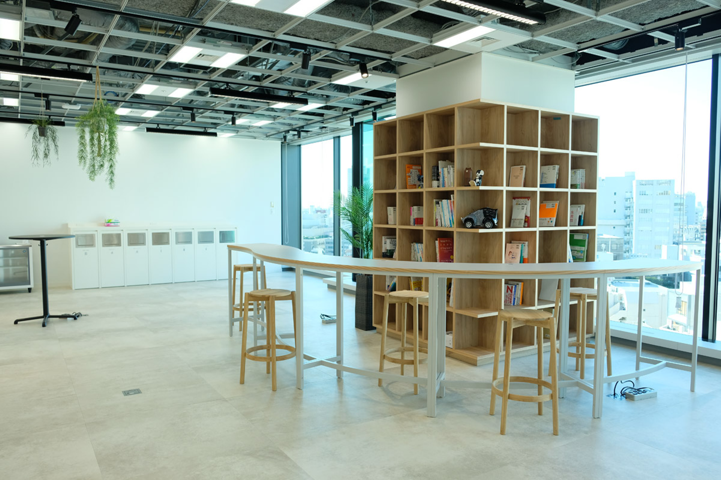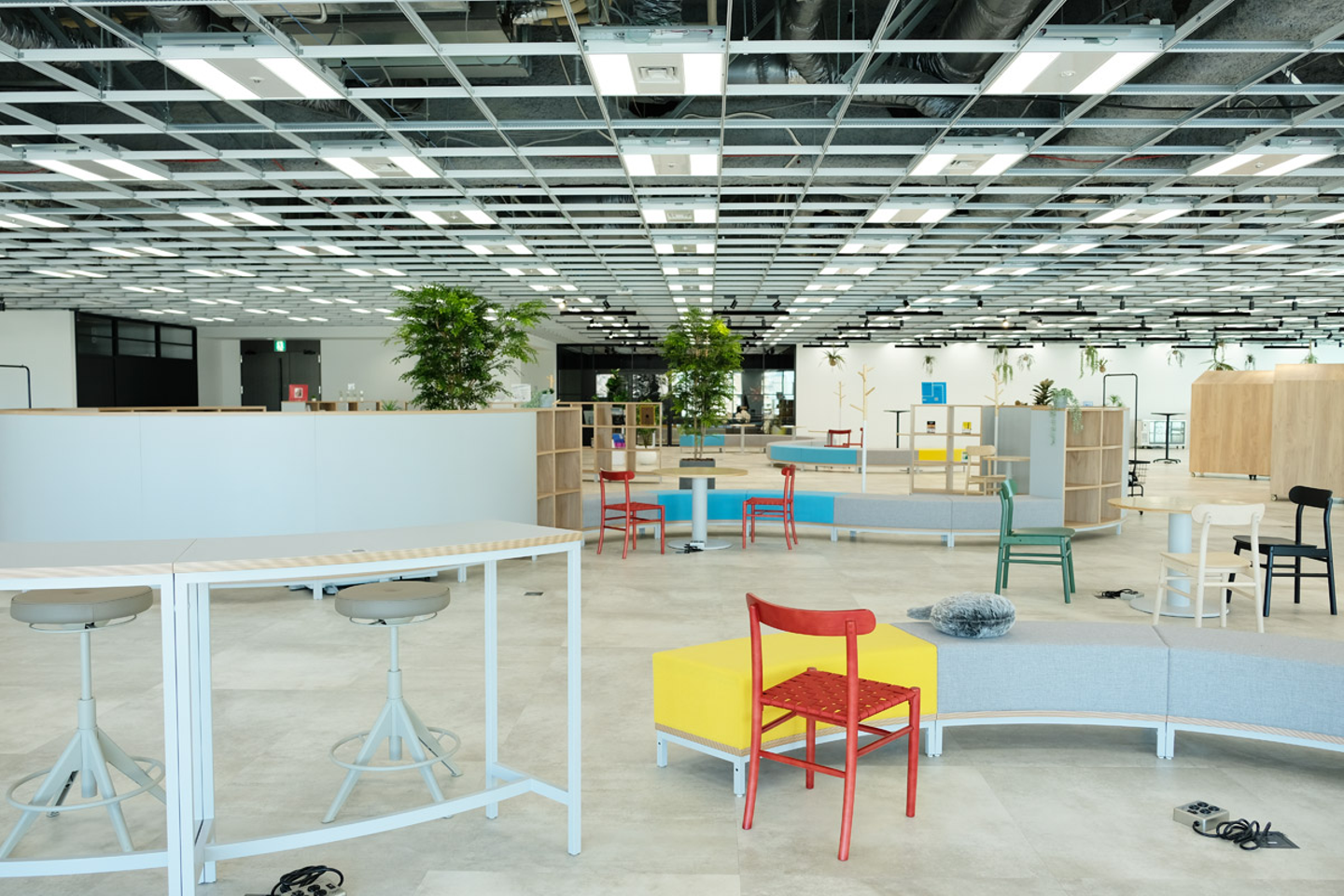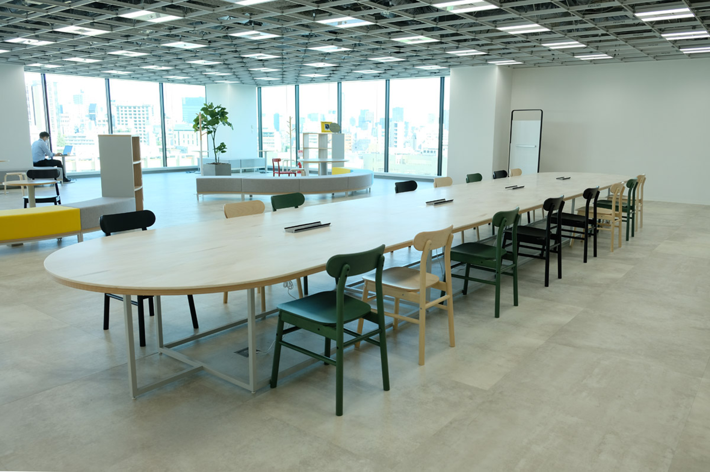 昨今のシェアオフィスのようなビンテージ家具や大人なシェアオフィスとは役割が違う。