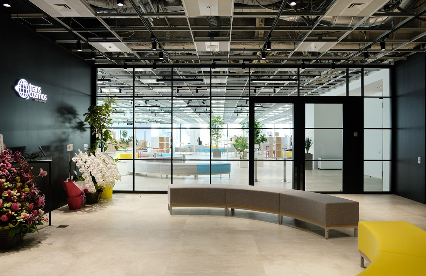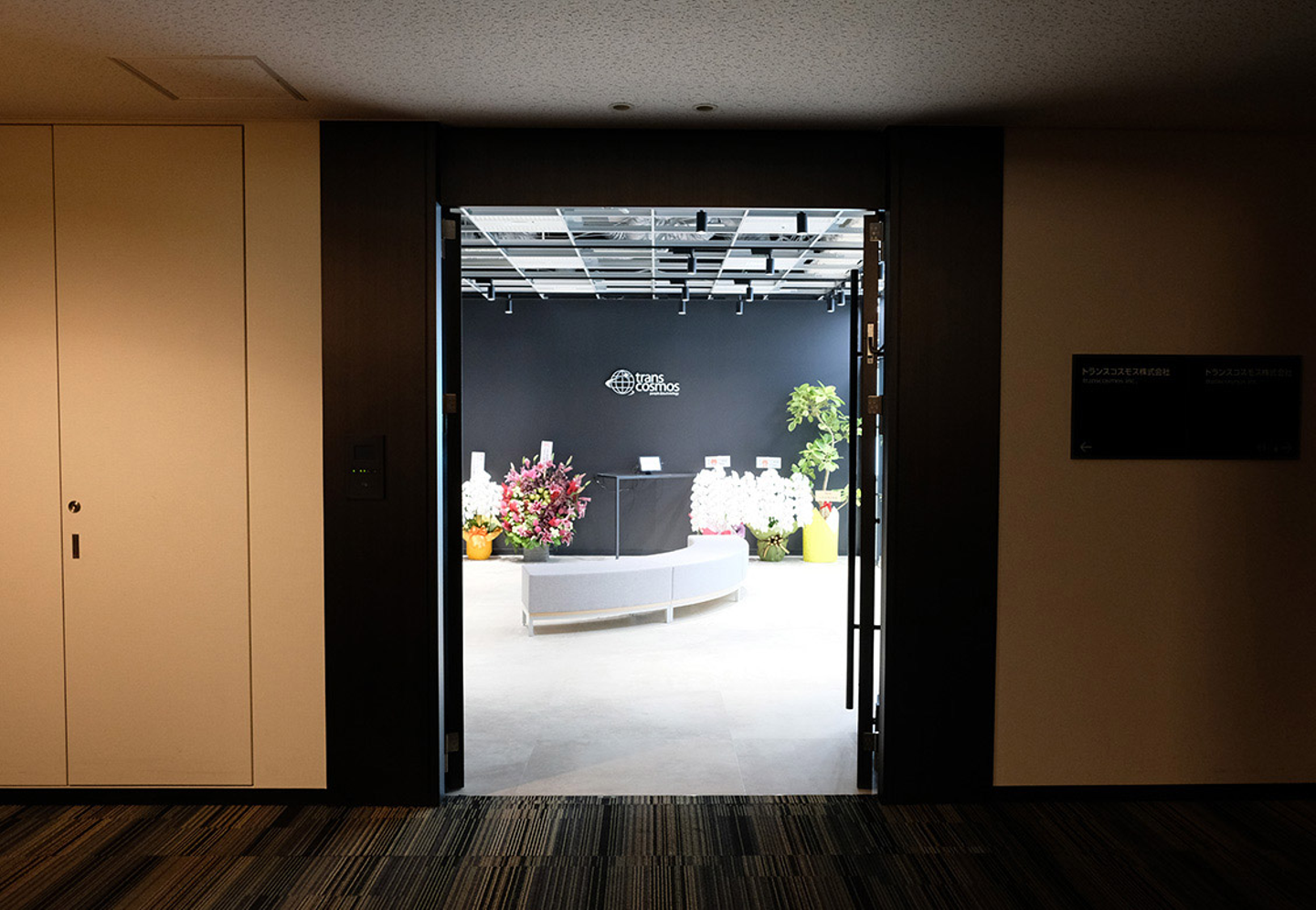 エレベーターを抜けると、transcosmosのロゴが目に入ります。