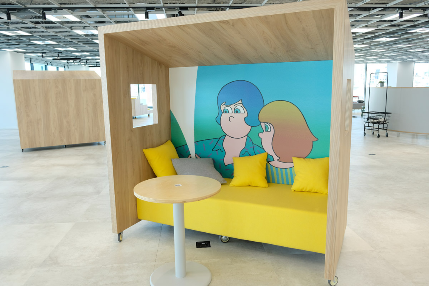 僕らの働き方やオフィスの使い方の変化に合わせて、レイアウトも更新していければ良いという考え方を、バッタネイションの岩沢兄弟に仕上げていただきました。