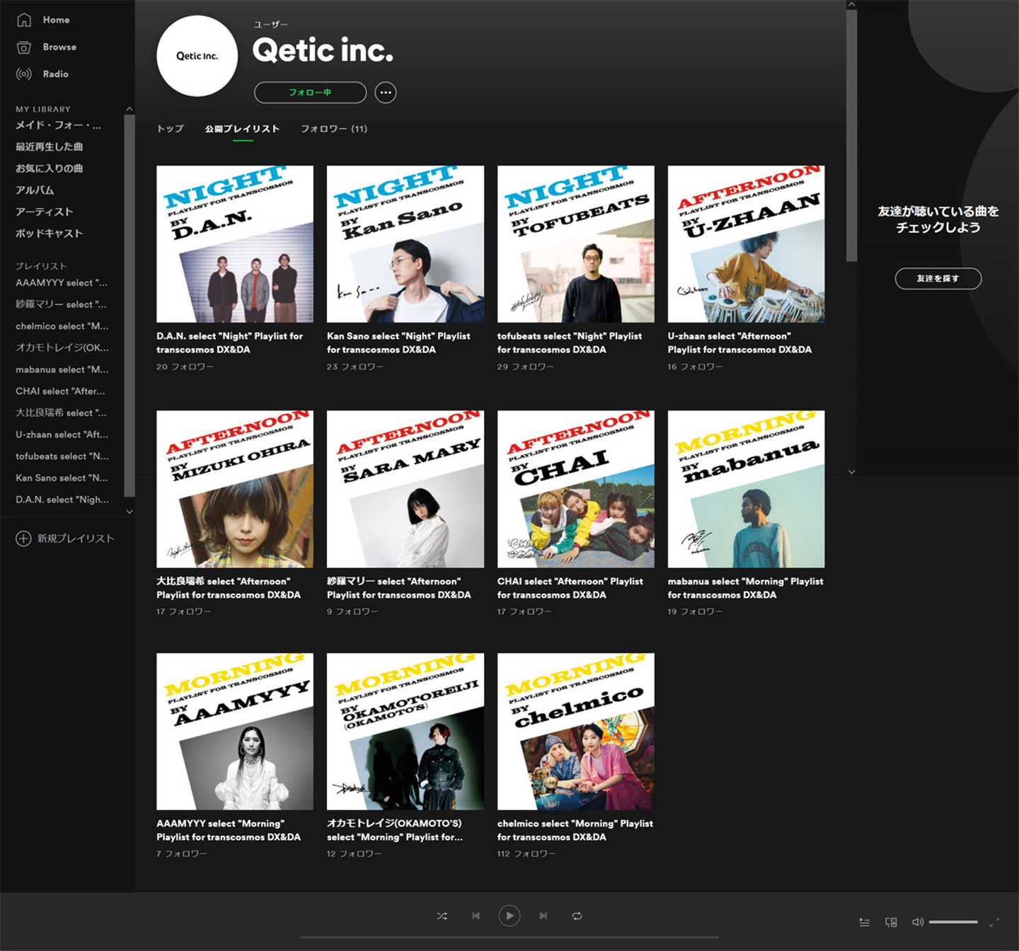 そしてなんと、このSpotifyプレイリストは、Qeticさんのアカウント上で公開されおり、読者の皆さまも聴くことができます!
