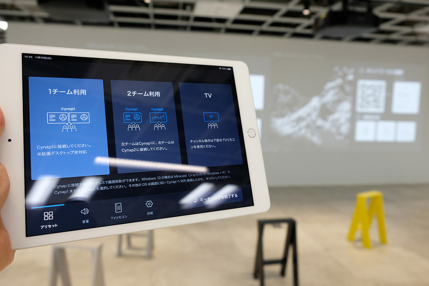 専用のiPadで操作することでPCの画面やTVも流すことができるので、イベントやセミナーやチームミーティングを実施したり、ワールドカップやオリンピックを流すこともできます。