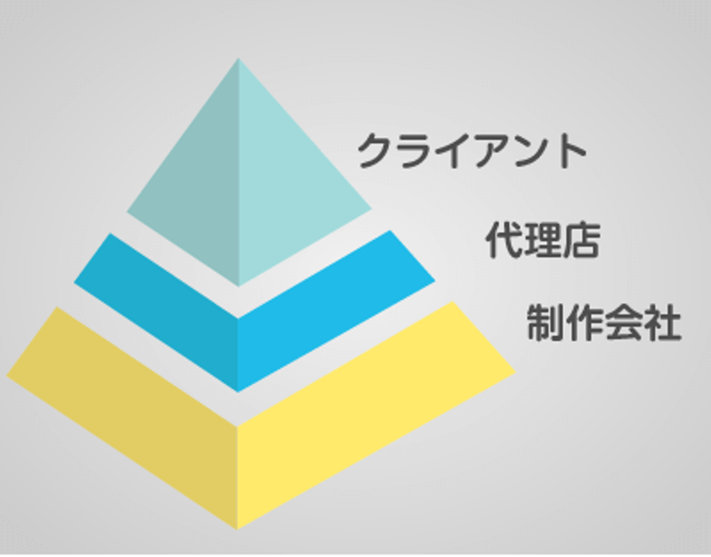 こちらは、【広告業界の商流】ぽい。大きく言うとこちらも法人から発注されたエンタープライズの枠に入ってくるのだが、大手の広告代理店をトップに、やはり階層構造を作っている。(そもそも、当の広告業界・印刷業界あたりが階層構造)