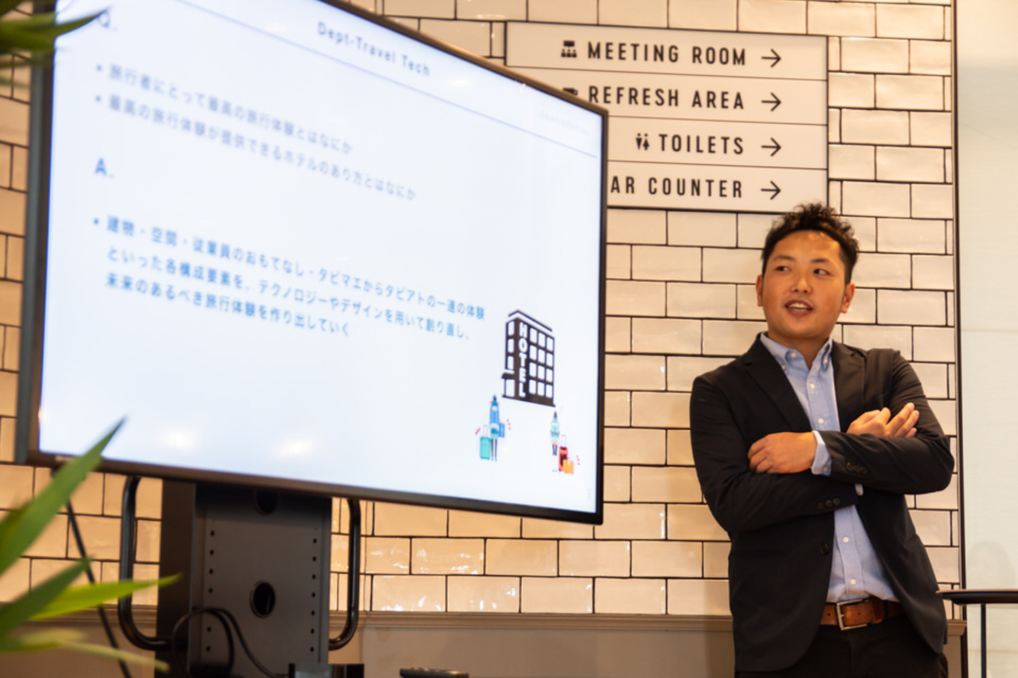 今後の事業構想、展開予定のサービス内容が各担当者から発表されました。観光の部分に特化した構想、事業内容に関して他部門から興味津々。今後ホテルとどう連携して行くか、サービスローンチの時期などに関して質問がありました(読者の方にはサービス内容に関してリリース前なのでまだ発表できないのですがそう遠くない未来に発表できる予定です!STAY TUNE!!