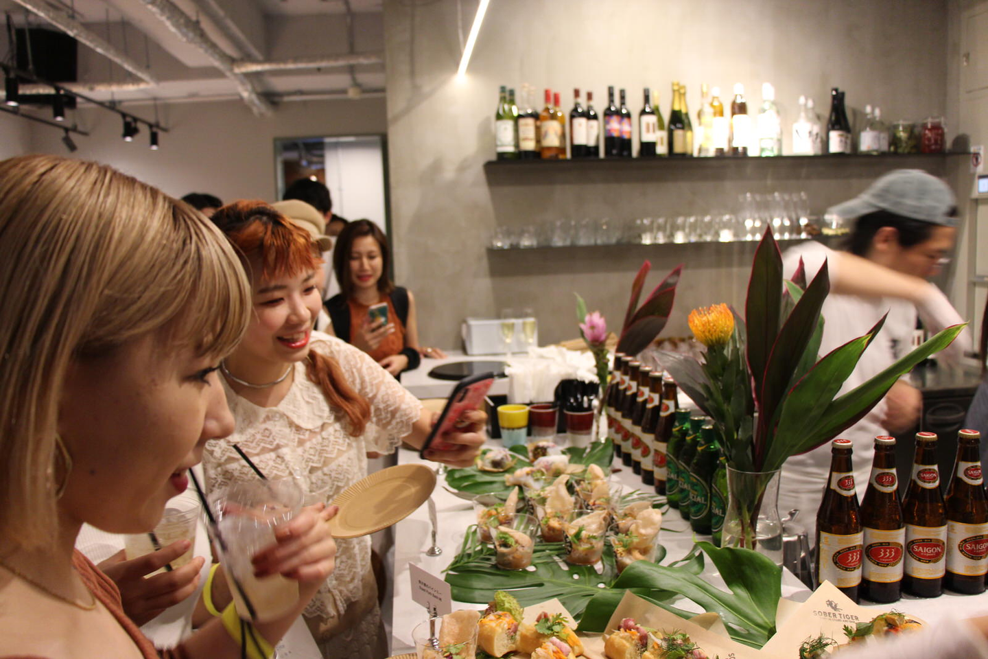 ベトナムビールやオリジナルカクテルと共にお料理を楽しむ方や写真を撮影される方がたくさんいらっしゃいました。
